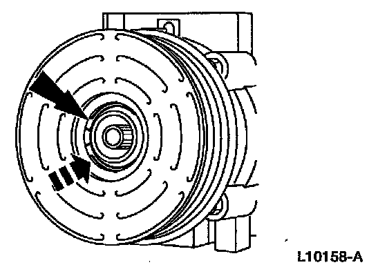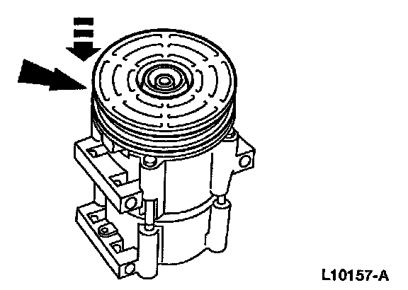 3. NOTE: The A/C clutch pulley is a tight fit on the A/C compressor head; it must be correctly aligned during installation.