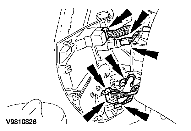 - Pull off seven electrical connectors (six shown).