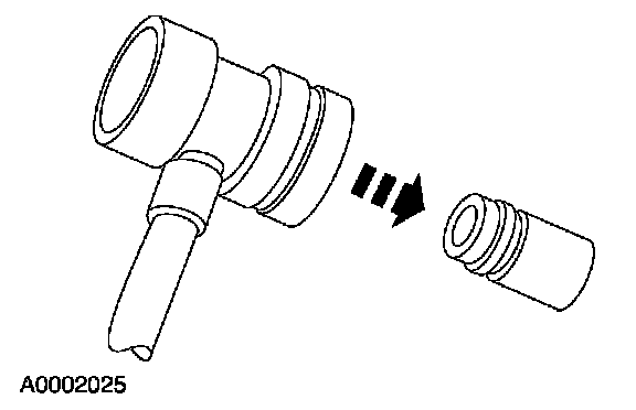 2. Remove the A/C charging valve cap from the low-pressure service gauge port valve.