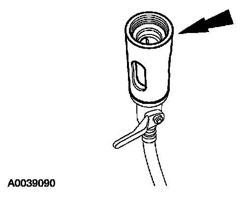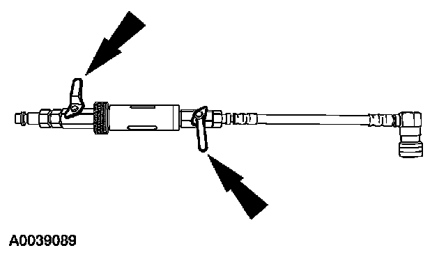 5. Install the dye/lubricant injector between the low-side service gauge port valve and the refrigerant service station or manifold gauge set.