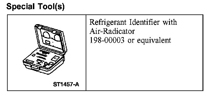 1. NOTE: An A/C refrigerant analyzer must be used to identify gas samples taken directly from the refrigeration system or storage containers prior to recovering or charging the refrigerant system.