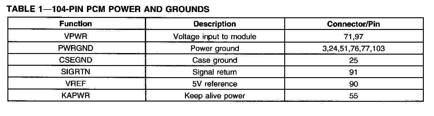 104-Pin PCM Power And Grounds: