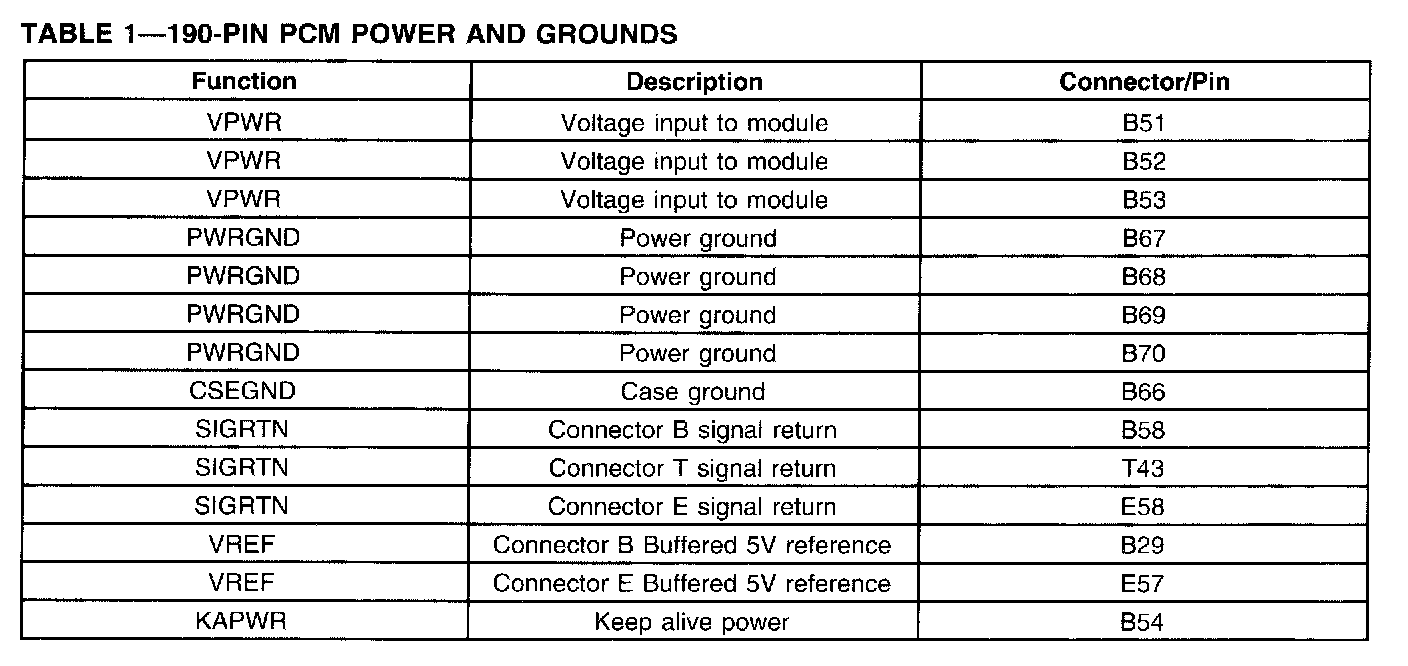 190-Pin PCM Power And Grounds:
