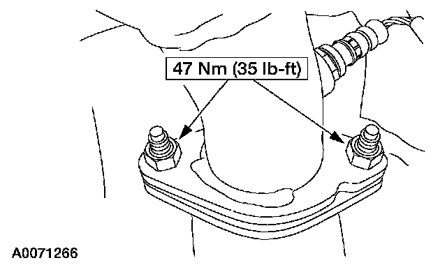 3. Remove the two catalytic converter-to-muffler assembly flange nuts. Discard the nuts.