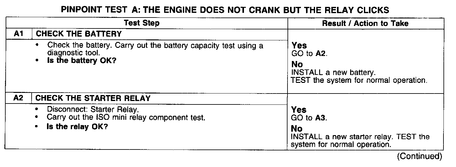 PINPOINT TEST A: THE ENGINE DOES NOT CRANK BUT THE RELAY CLICKS