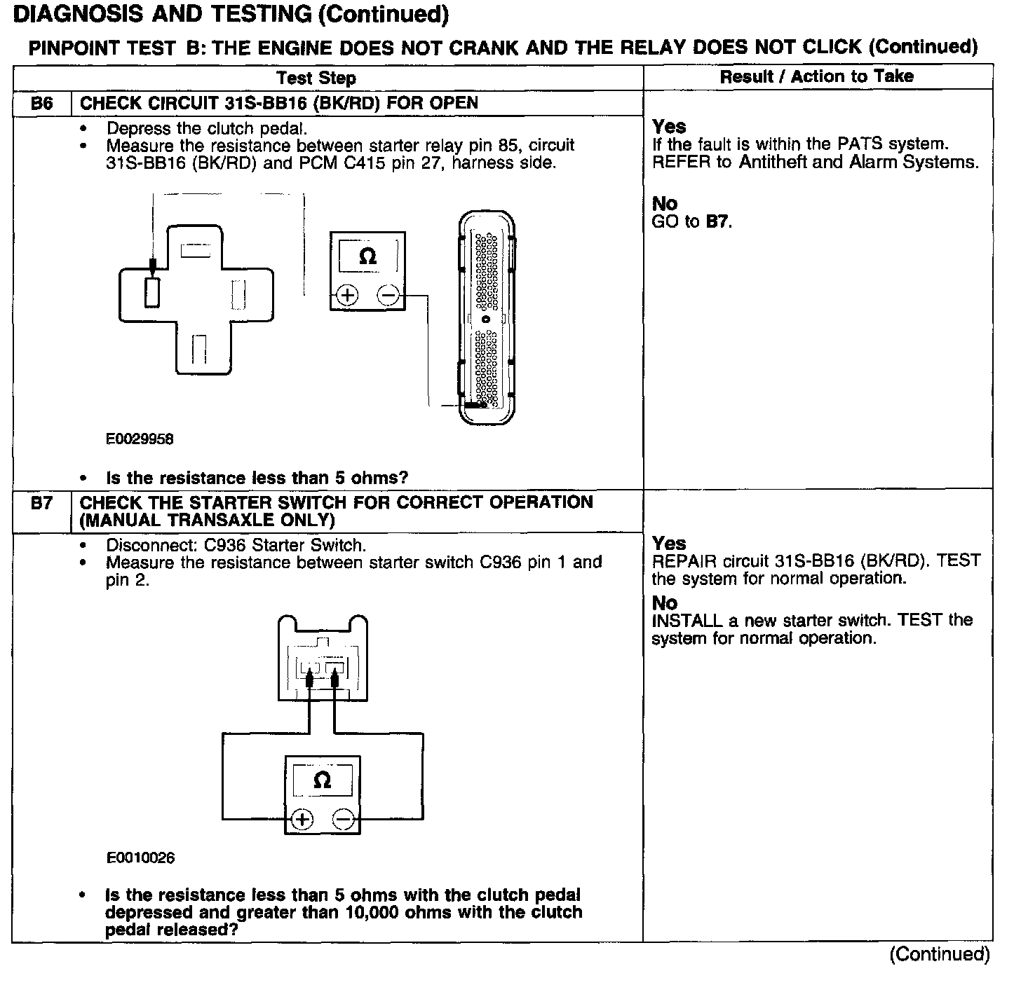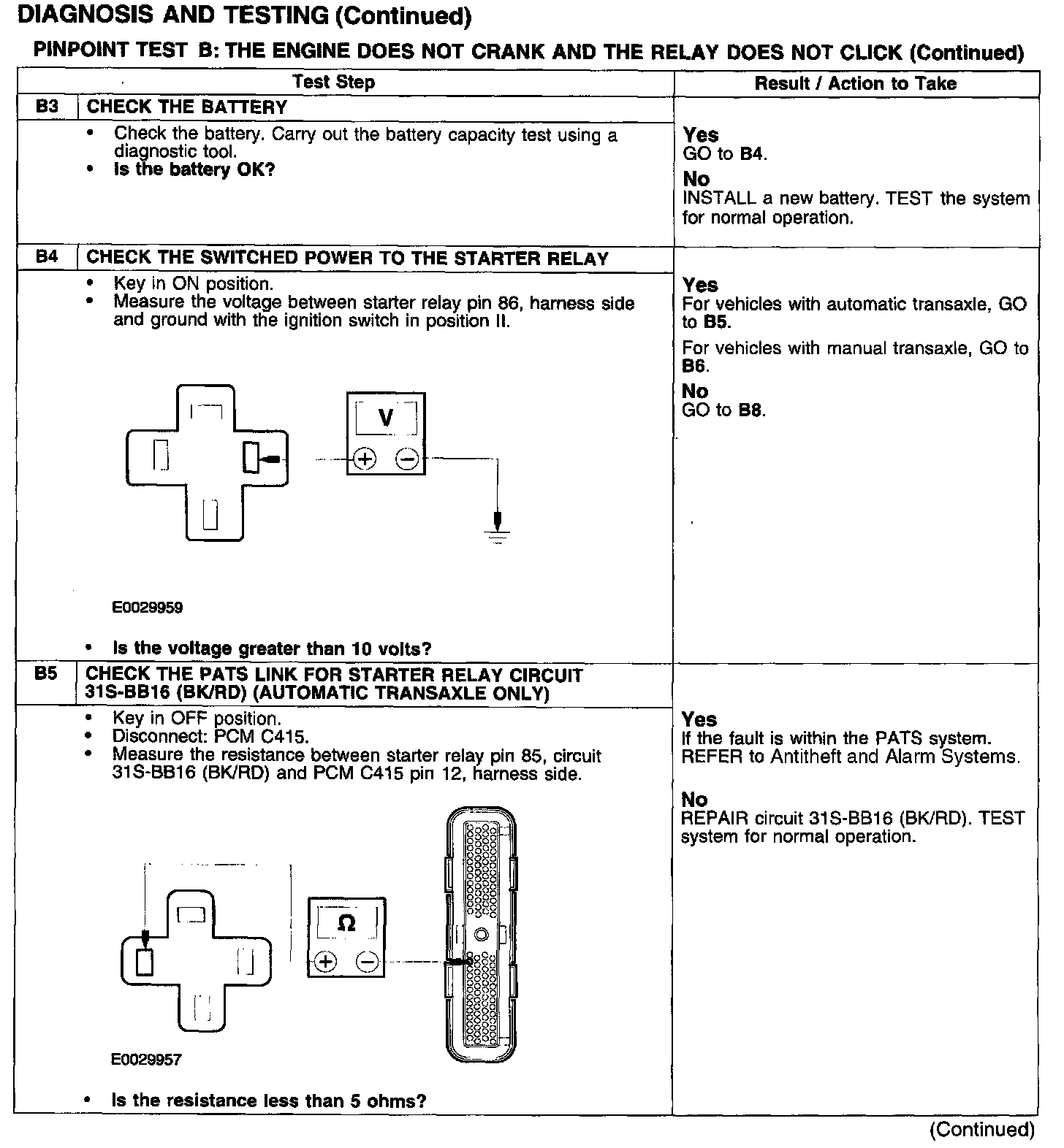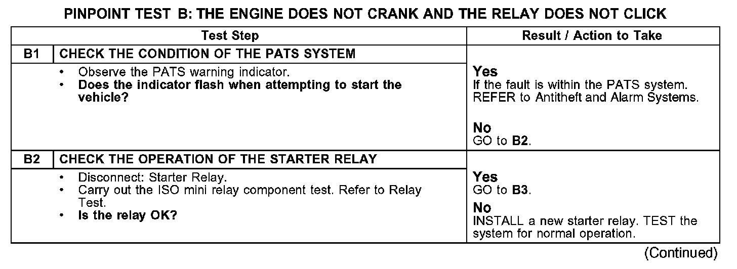 PINPOINT TEST B: THE ENGINE DOES NOT CRANK AND THE RELAY DOES NOT CLICK