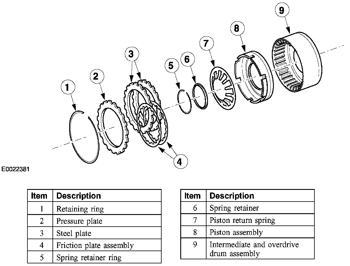 5. Install the reverse clutch pressure, friction and steel plates.