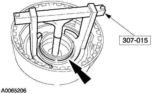 2. Using the special tool, remove the reverse clutch piston return spring retainer ring and retainer.