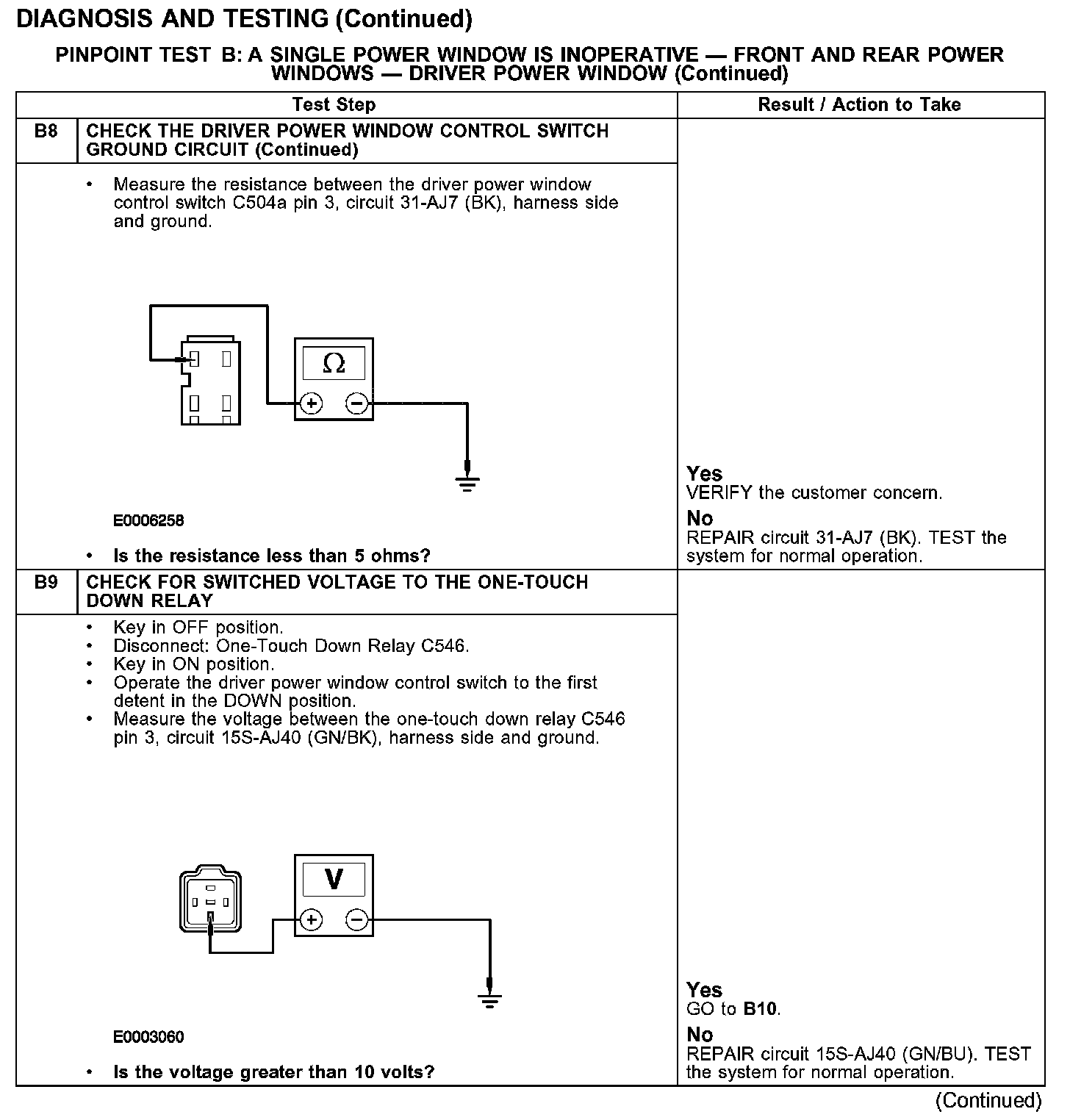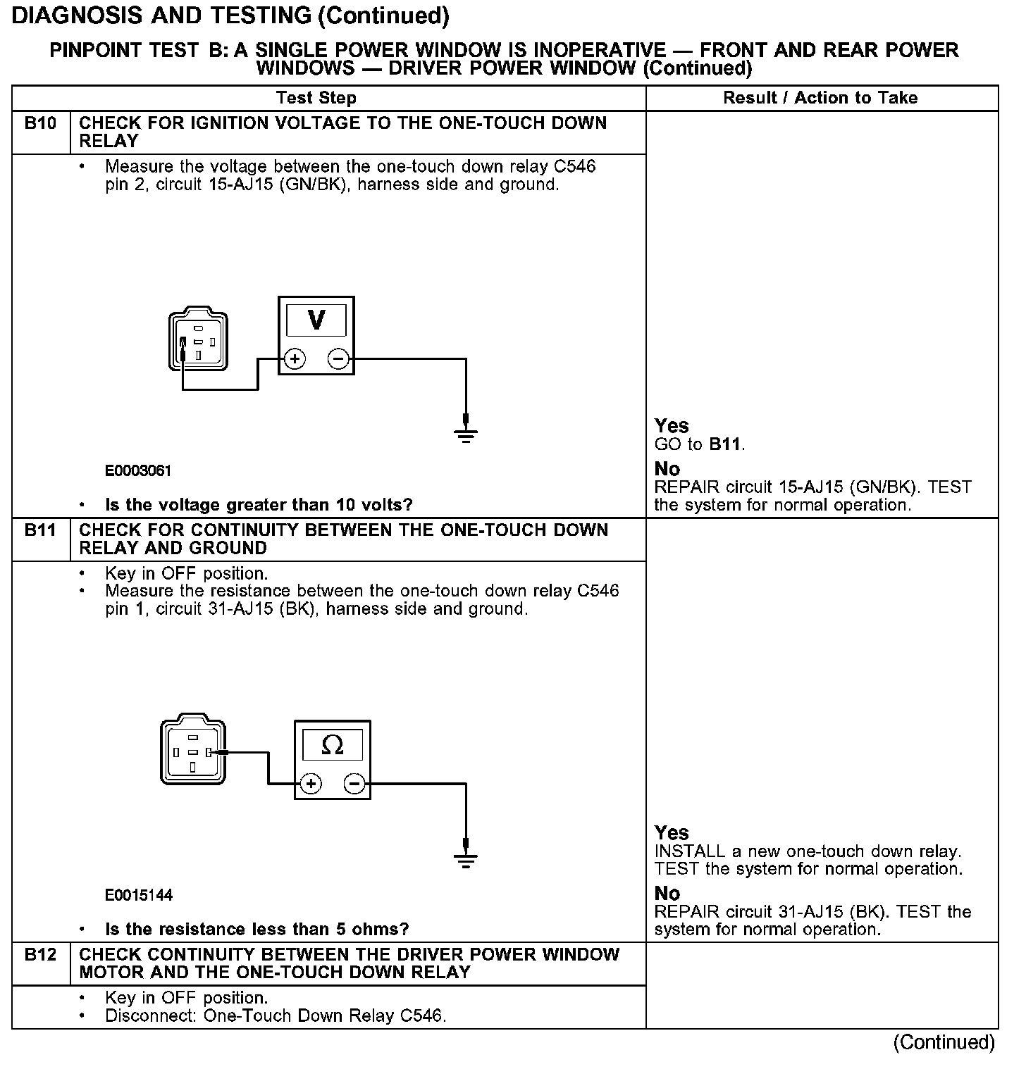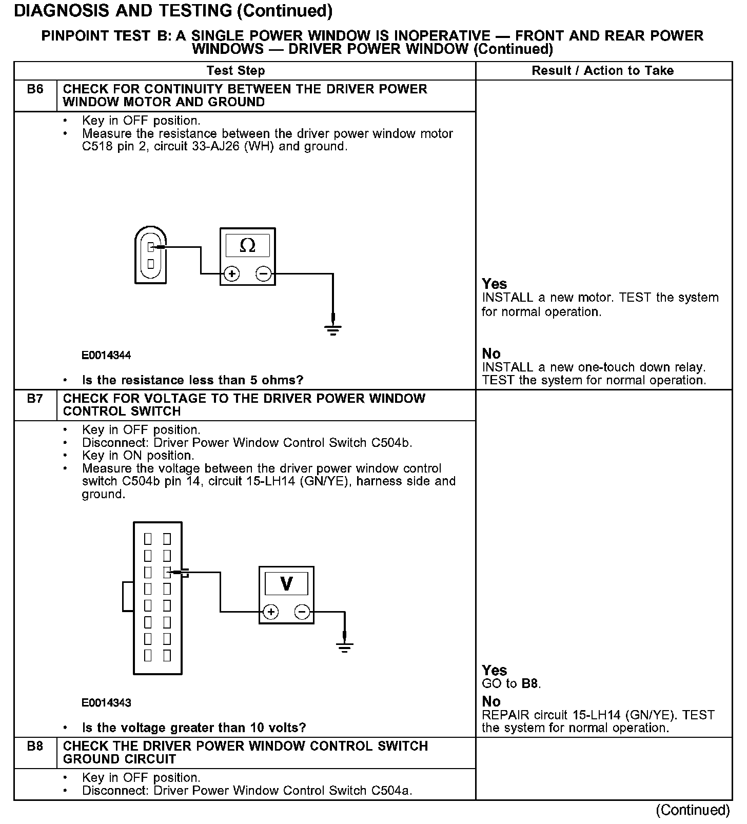 PINPOINT TEST B: A SINGLE POWER WINDOW IS INOPERATIVE - FRONT AND REAR POWER WINDOWS - DRIVER POWER WINDOW