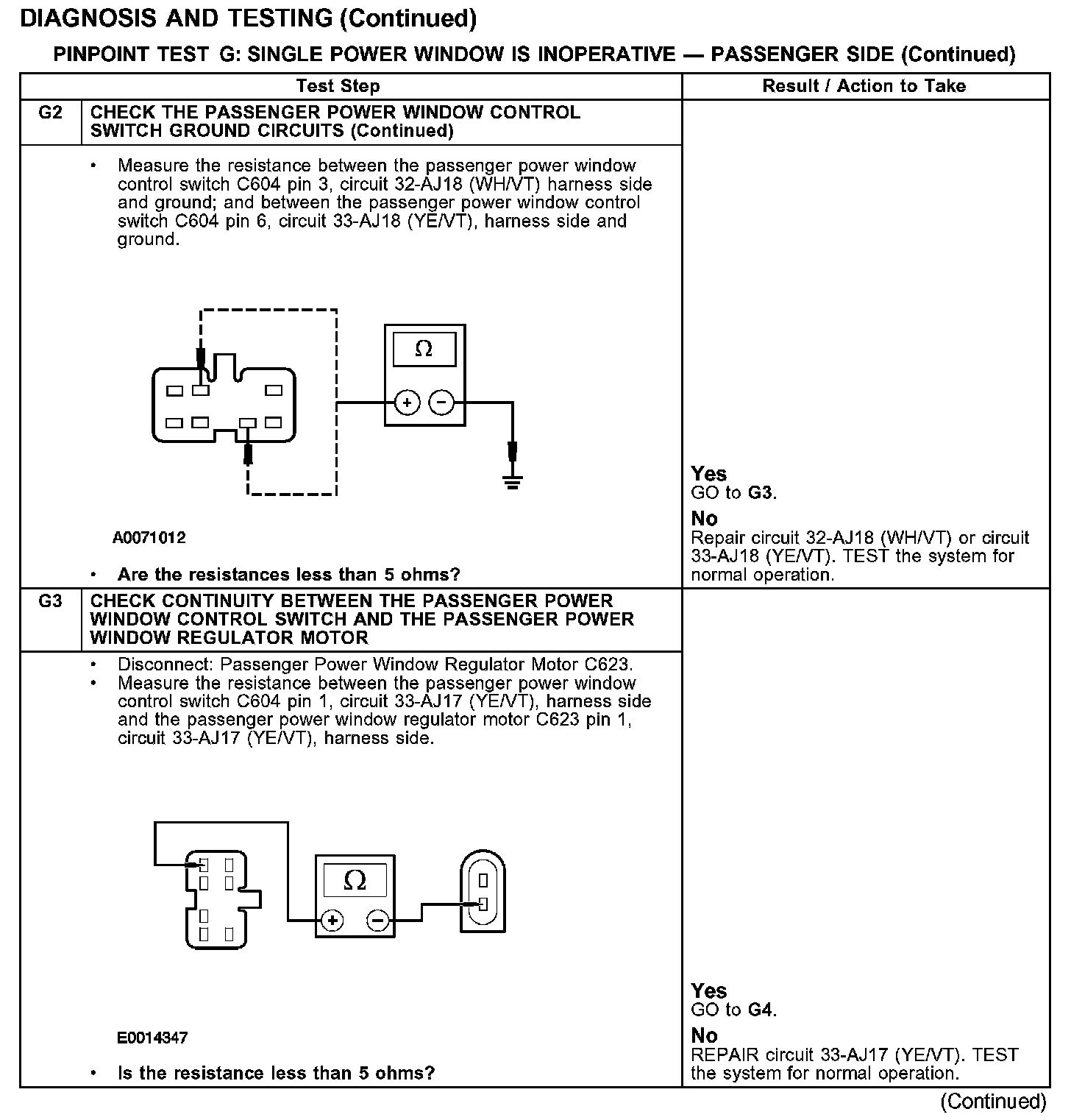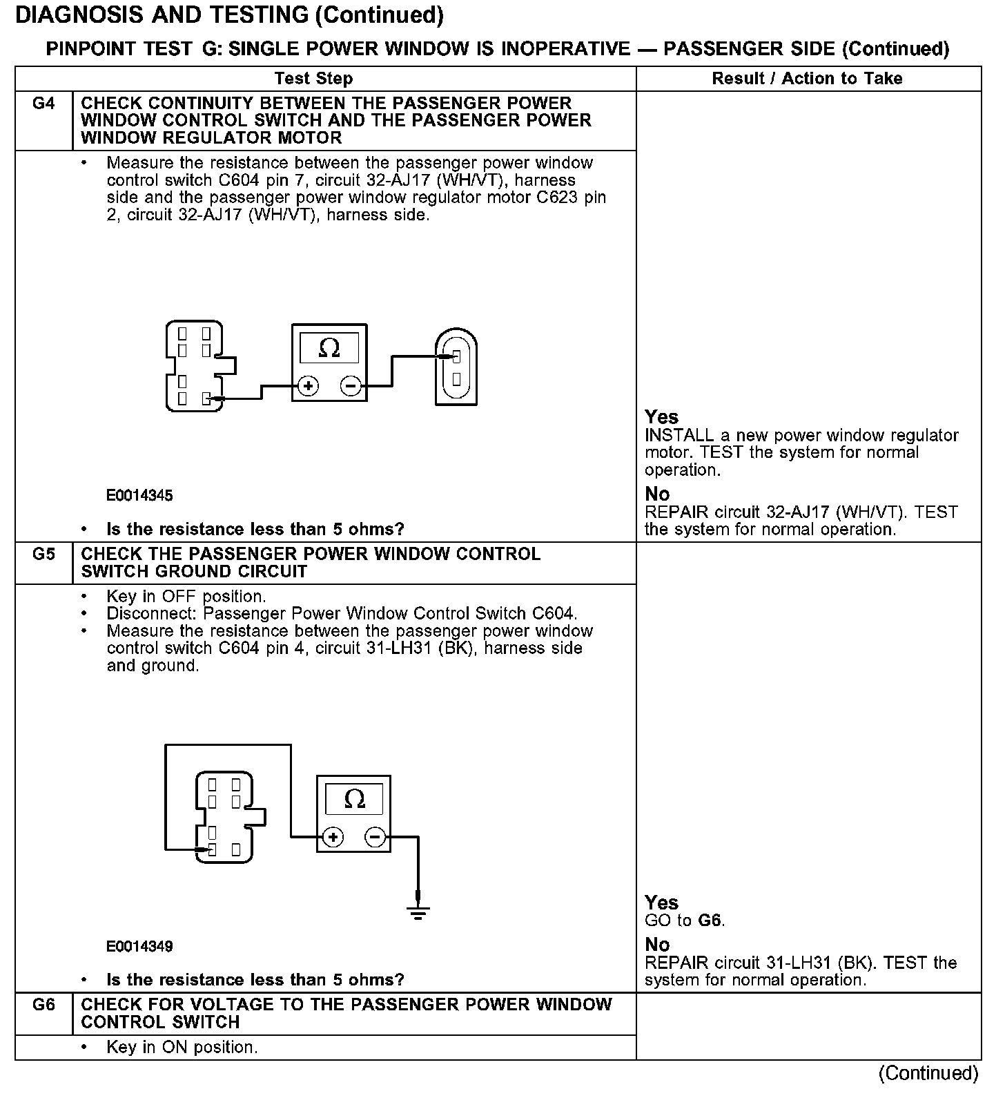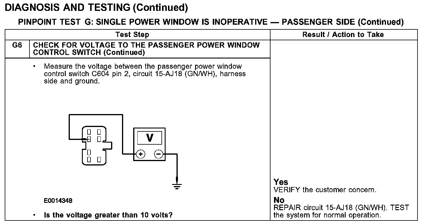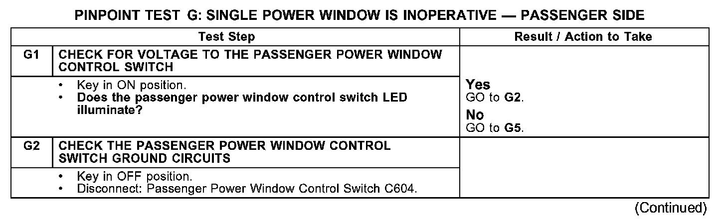 PINPOINT TEST G: SINGLE POWER WINDOW IS INOPERATIVE - PASSENGER SIDE