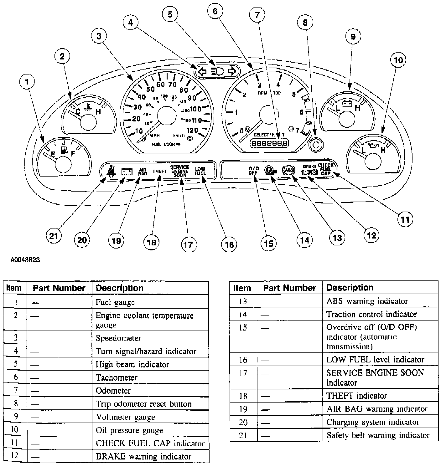 Instrument Panel, Gauges and Warning Indicators: Locations
