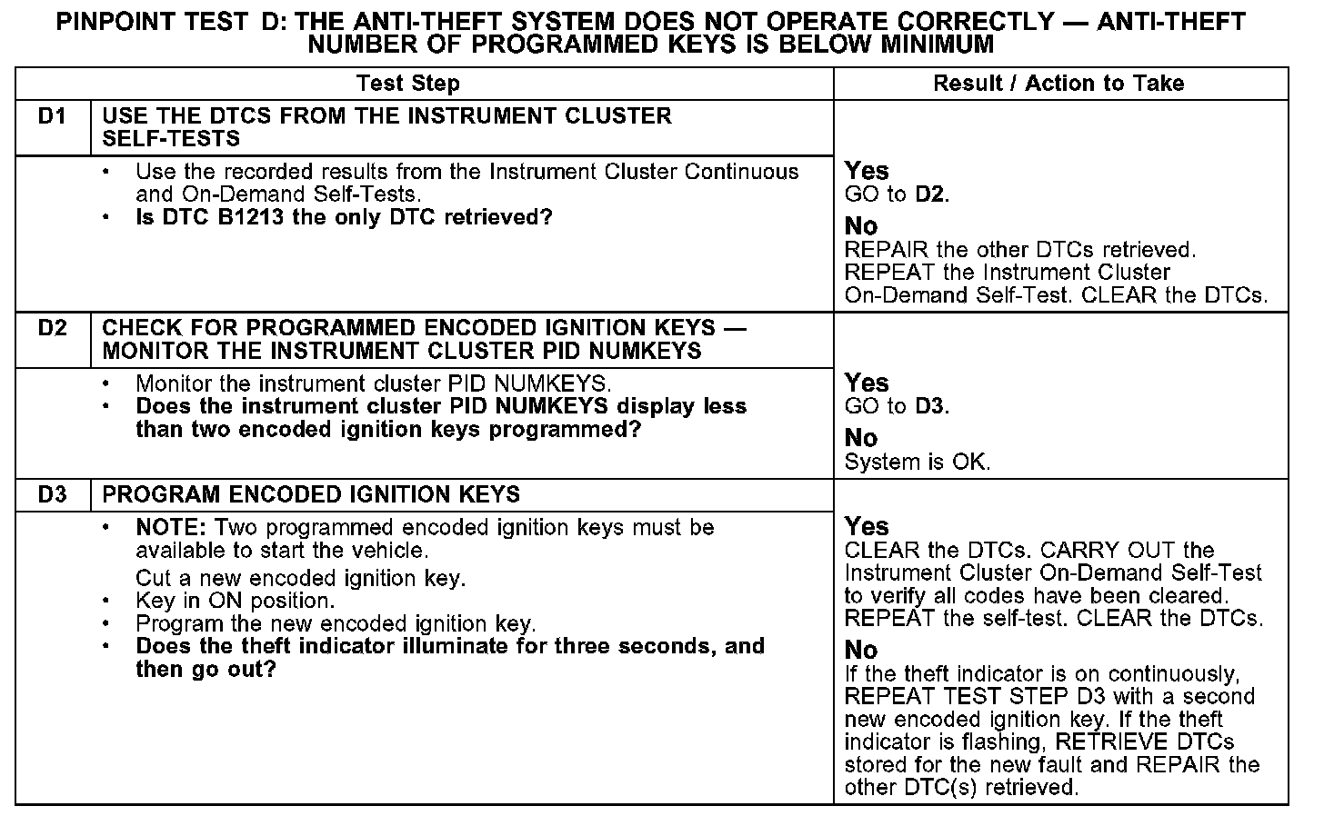PINPOINT TEST D: THE ANTI-THEFT SYSTEM DOES NOT OPERATE CORRECTLY - ANTI-THEFT NUMBER OF PROGRAMMED KEYS IS BELOW MINIMUM