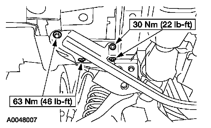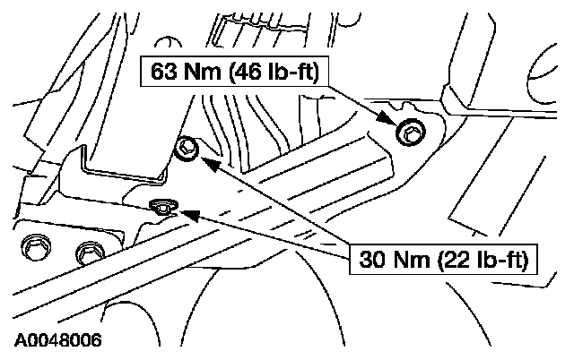4. Remove the LH front subframe support bolts.