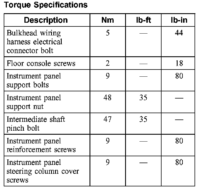 Dashboard / Instrument Panel: Specifications