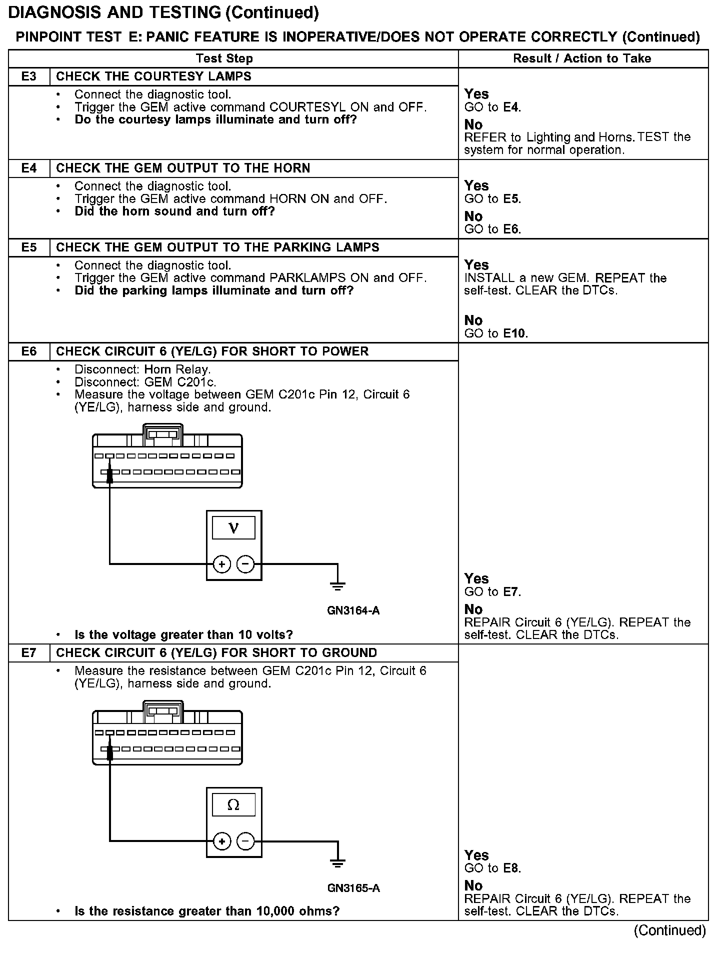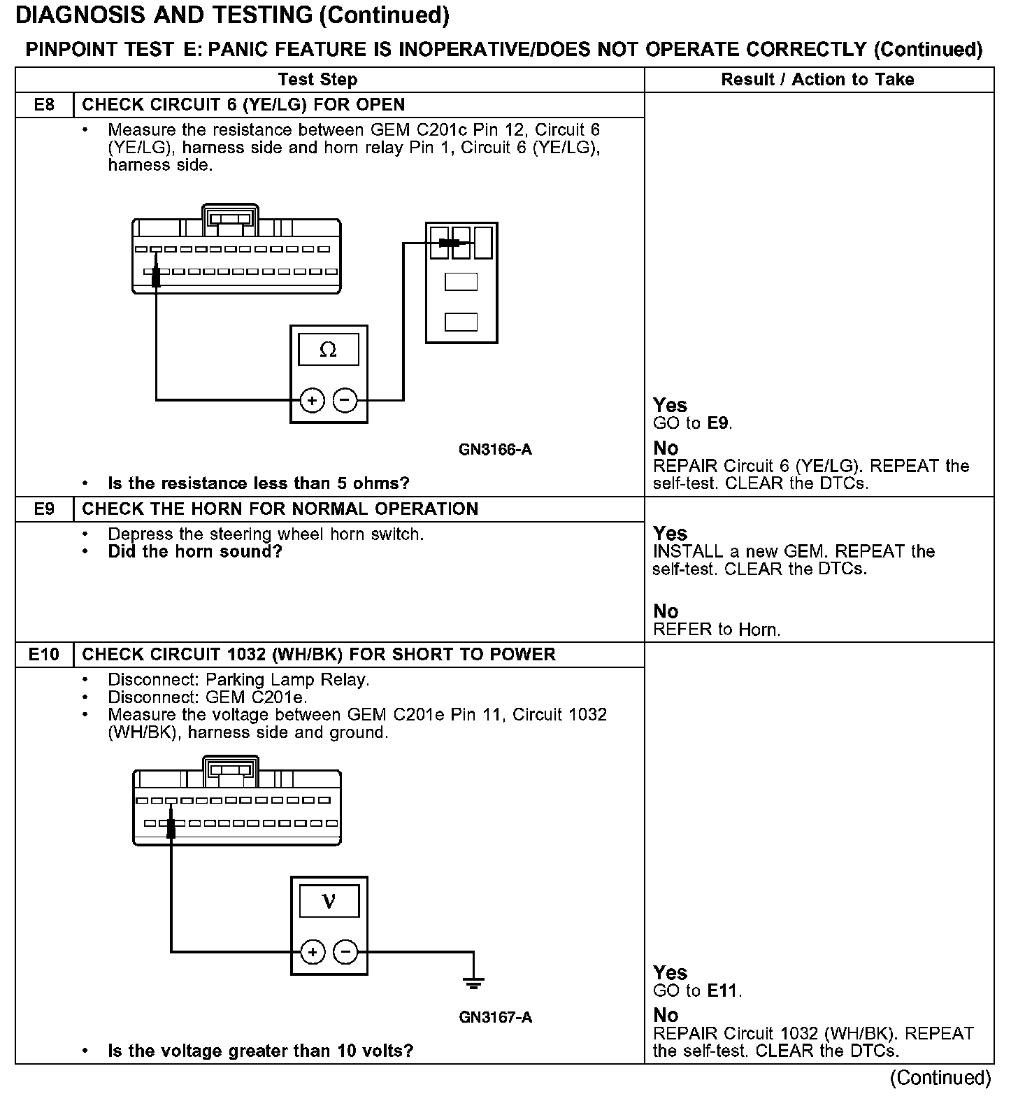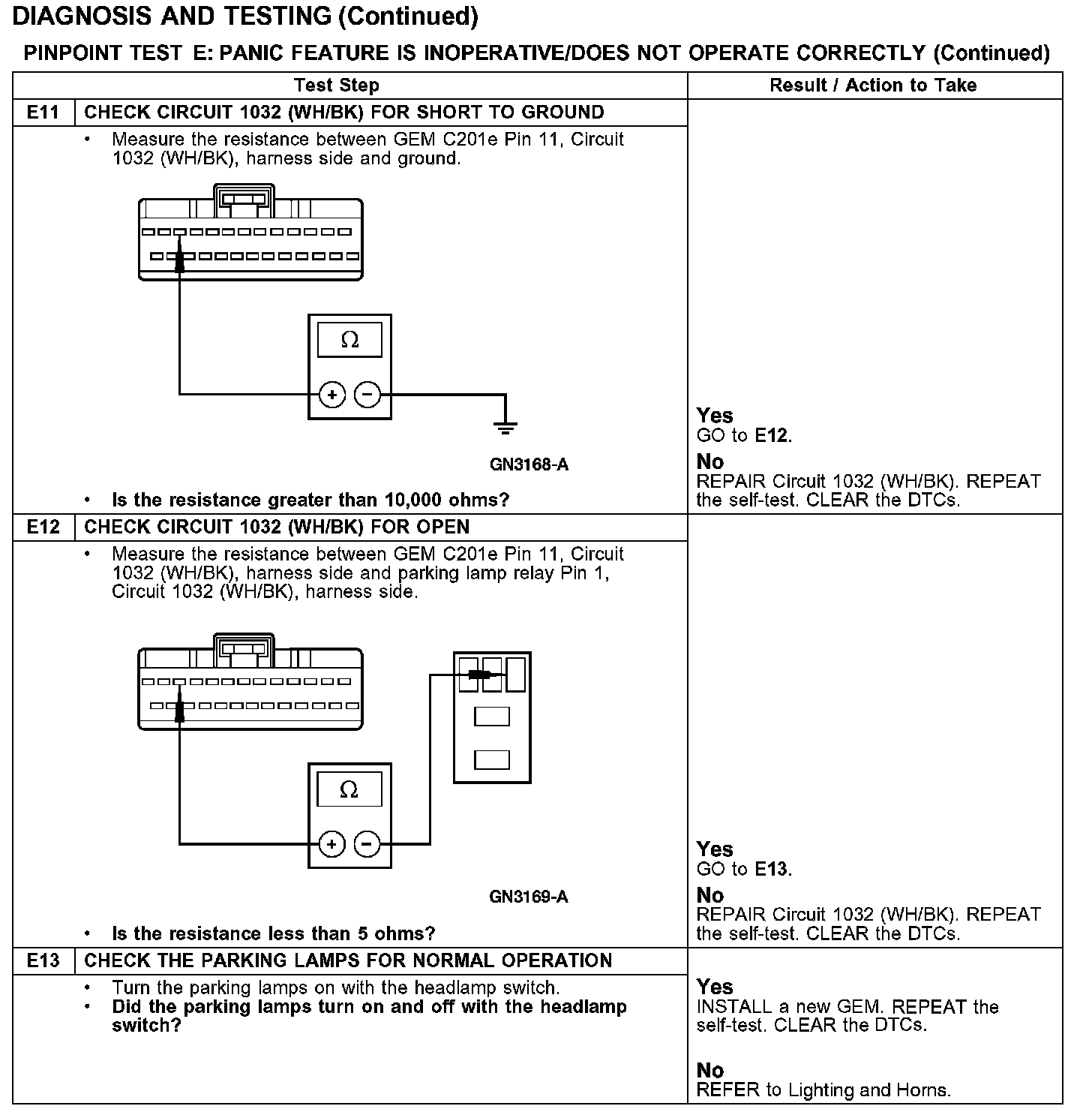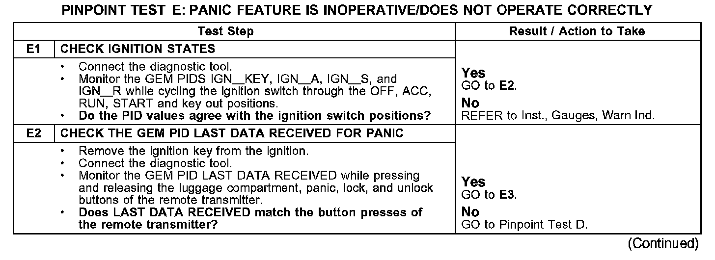 PINPOINT TEST E: PANIC FEATURE IS INOPERATIVE/DOES NOT OPERATE CORRECTLY