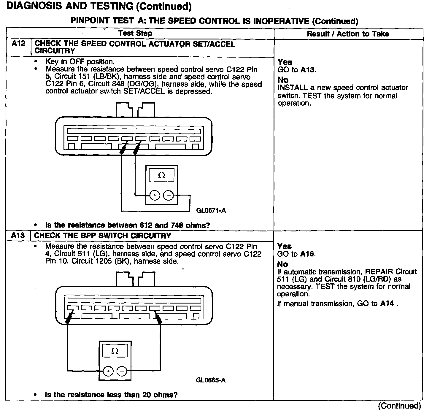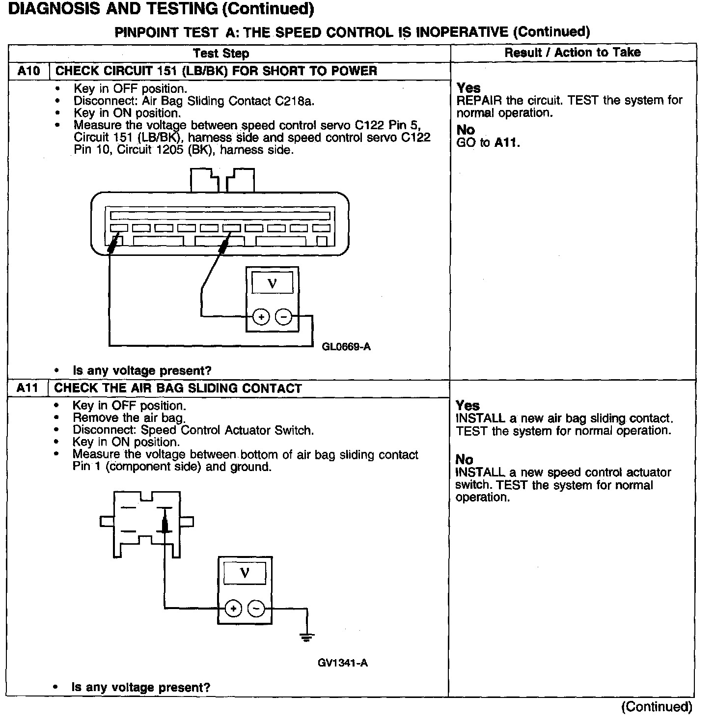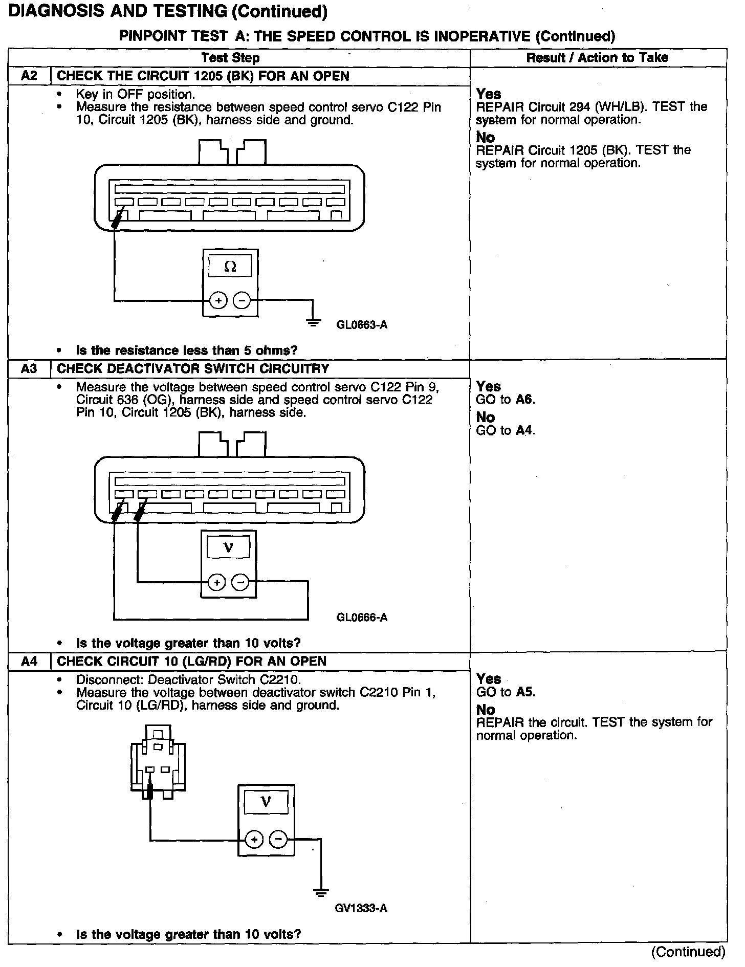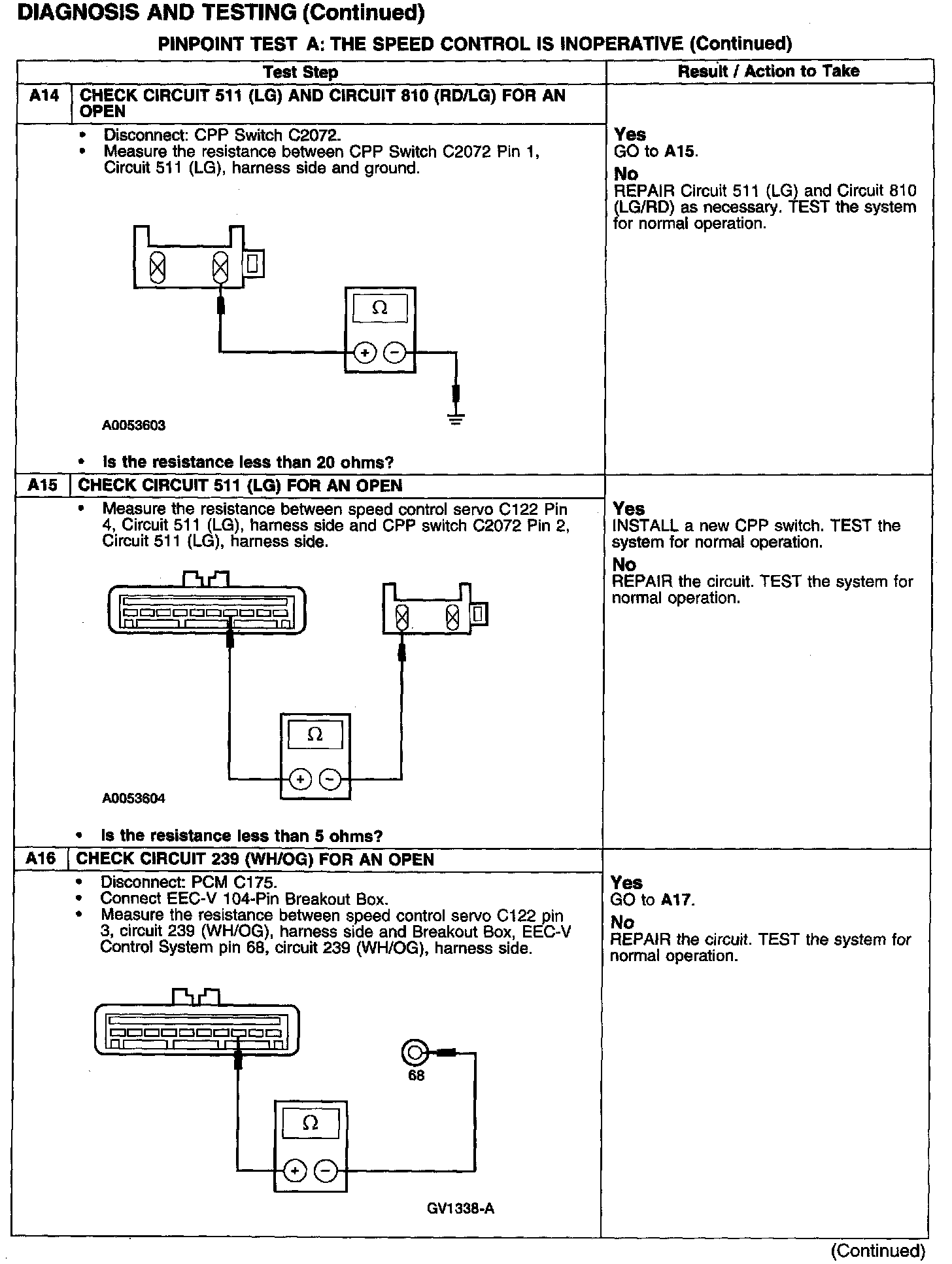 PINPOINT TEST A: THE SPEED CONTROL IS INOPERATIVE