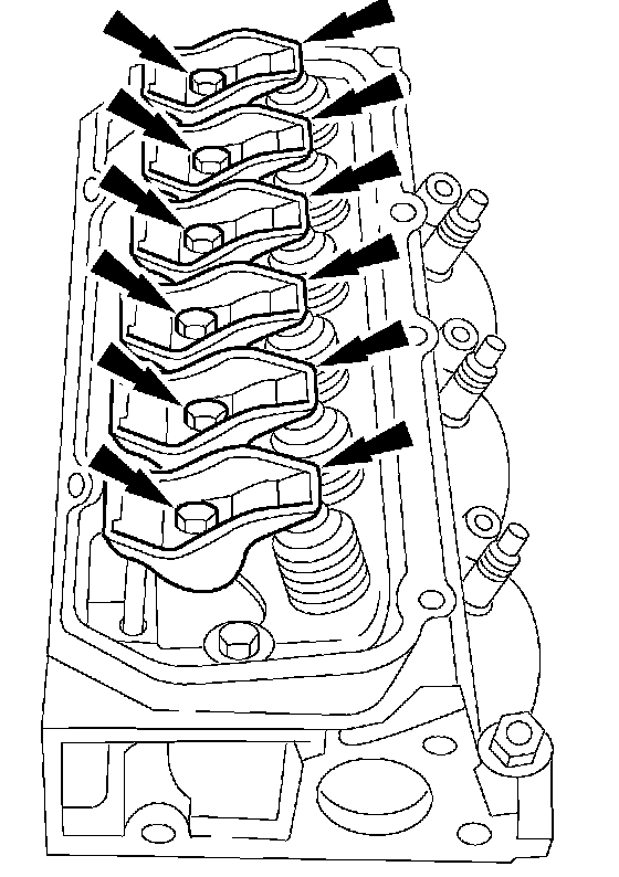 To install, reverse the removal procedure. Tighten the rocker arm bolts in two stages.