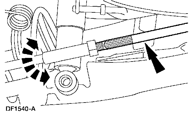 ^ To prevent damage to the ball joints, hold the tie-rod ends while loosening the nuts.