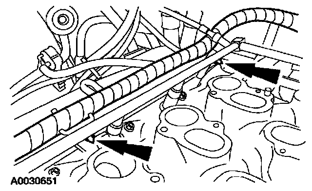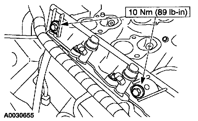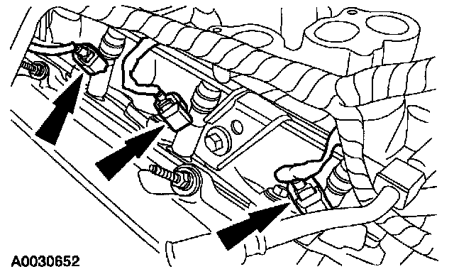 Remove the four supply manifold bolts and remove the fuel supply manifold with the injectors.