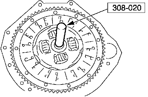 ^ Using the special tool, align the clutch disc.