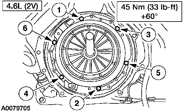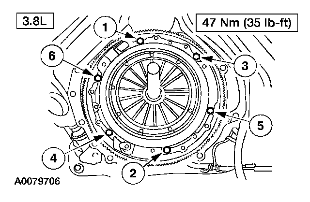 2. CAUTION: Loosen the bolts evenly to prevent clutch pressure plate damage.
