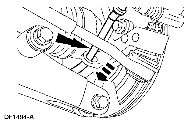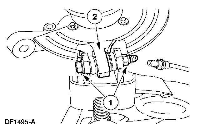 11. Remove the parking brake rear cable and conduit from the rear disc brake caliper.