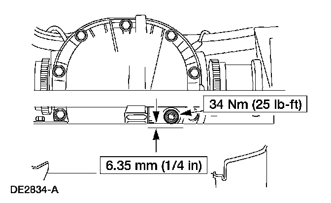 ^ If necessary, fill the rear axle housing to the level shown with SAE 75W-140 High Performance Rear Axle Lubricant F1TZ-19580-B or equivalent meeting Ford specification WSL-M2C192-A. The refill capacity is 1.23 - 1.37 liters (2.6 - 2.9 pints).