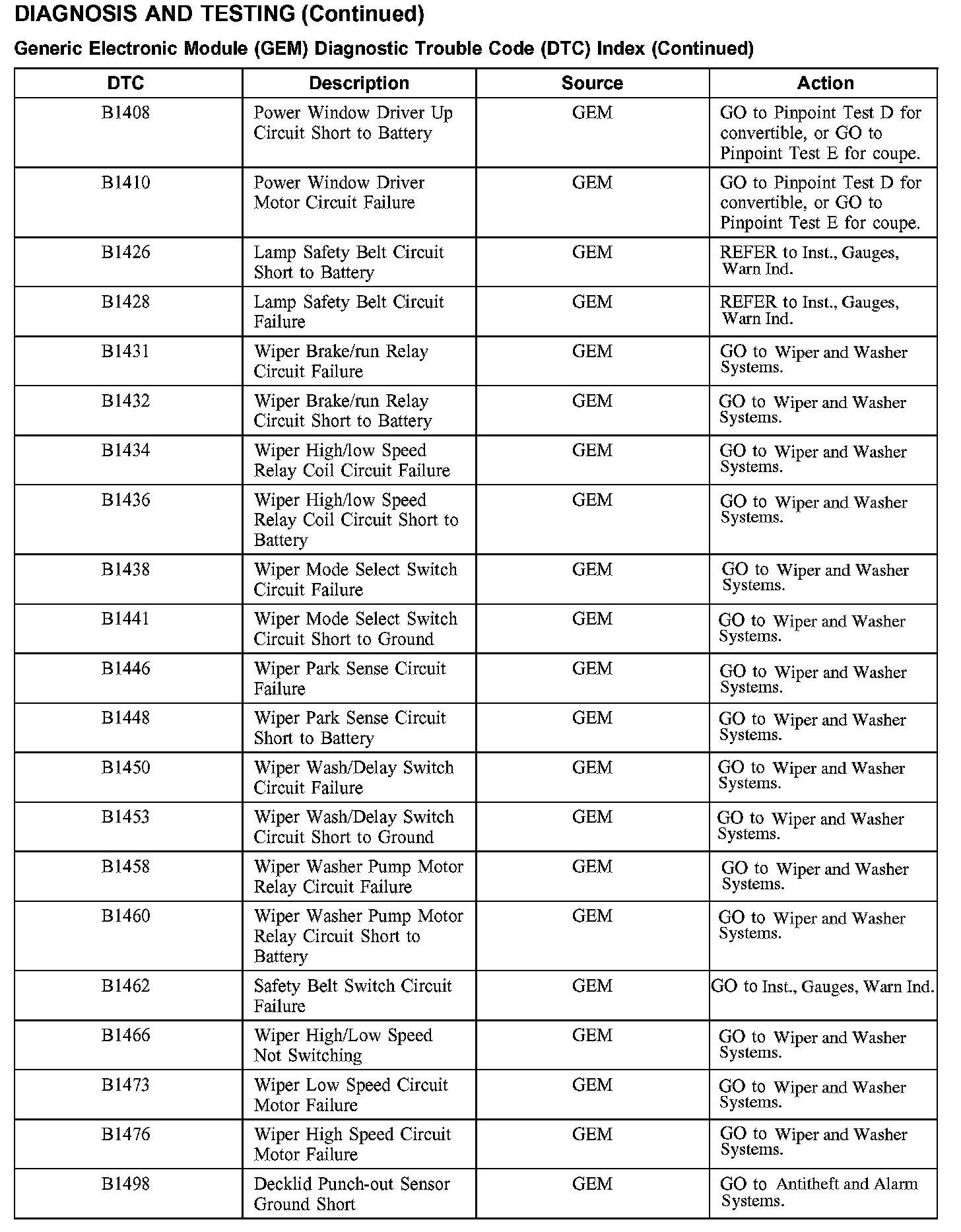 DTC Index B1408 - B1498: