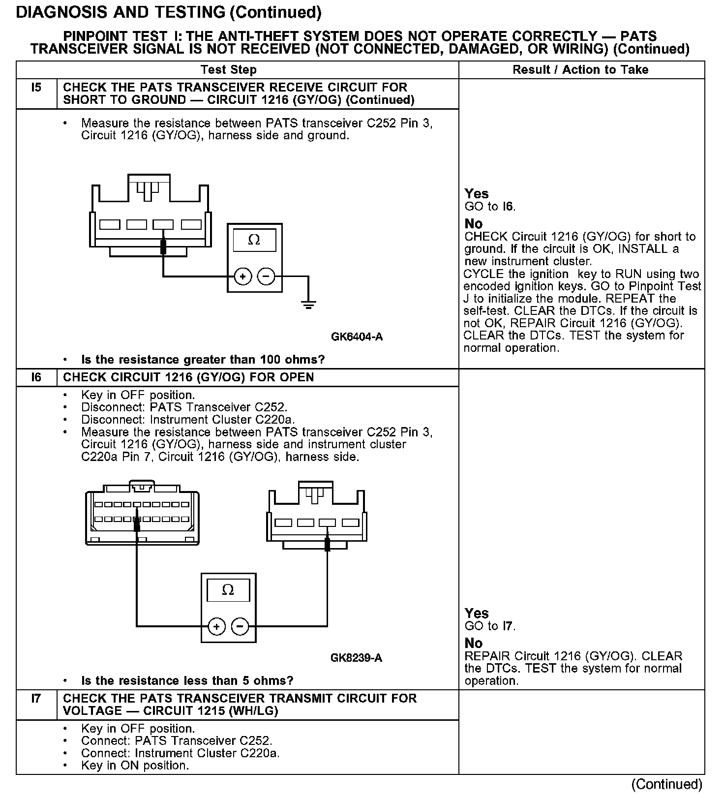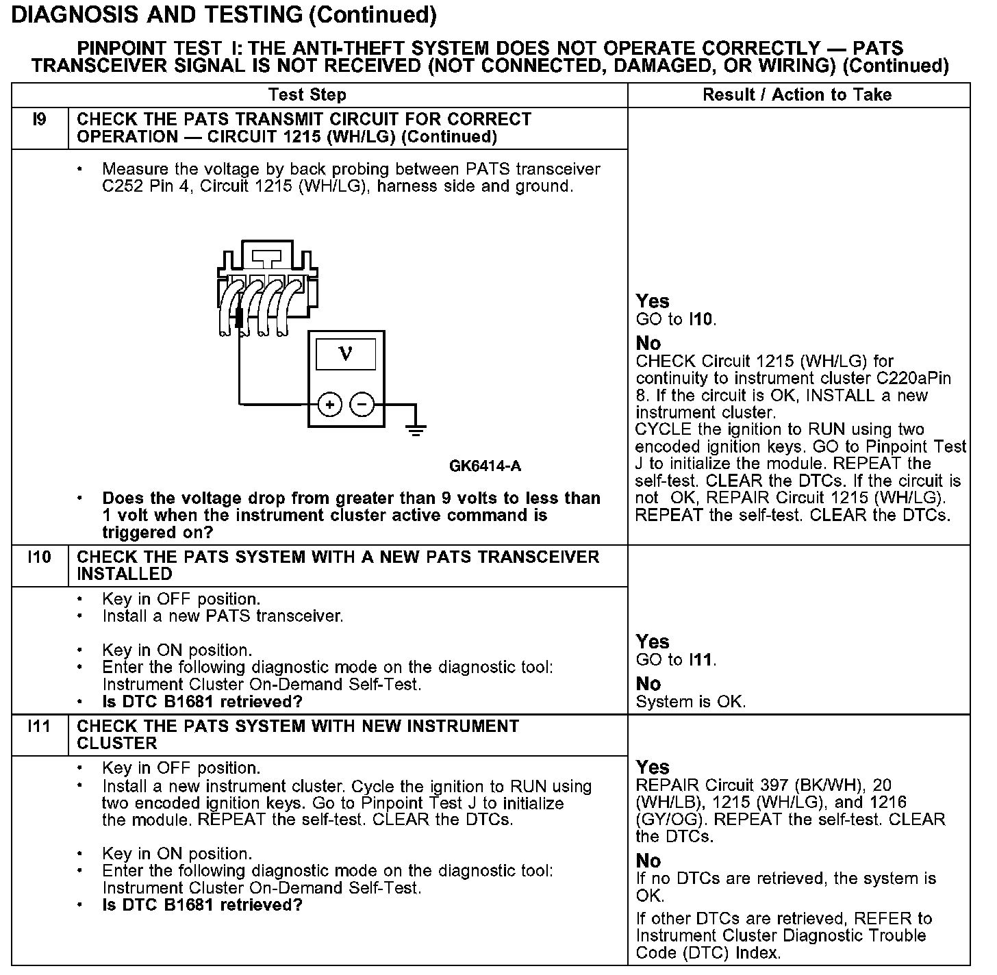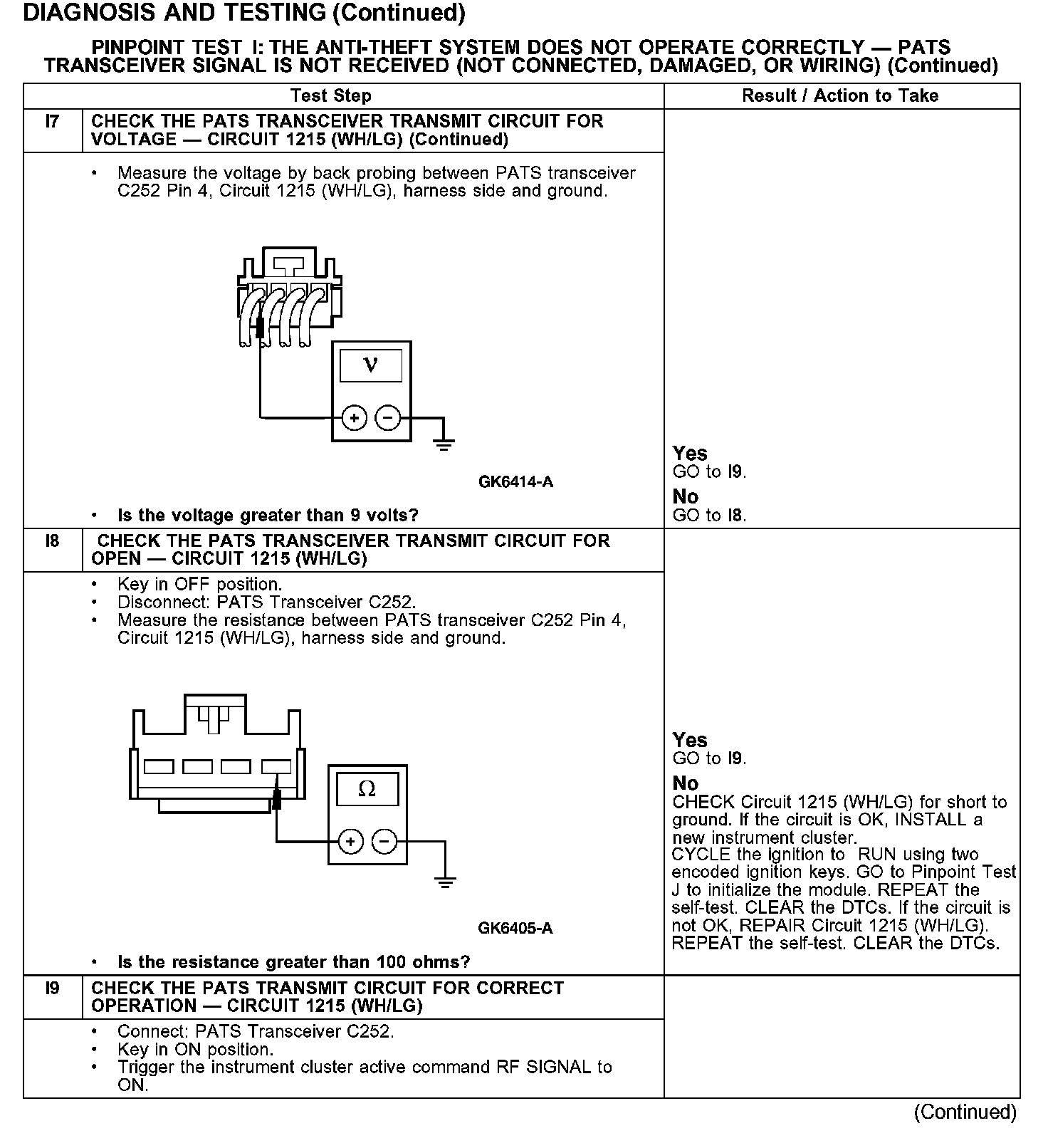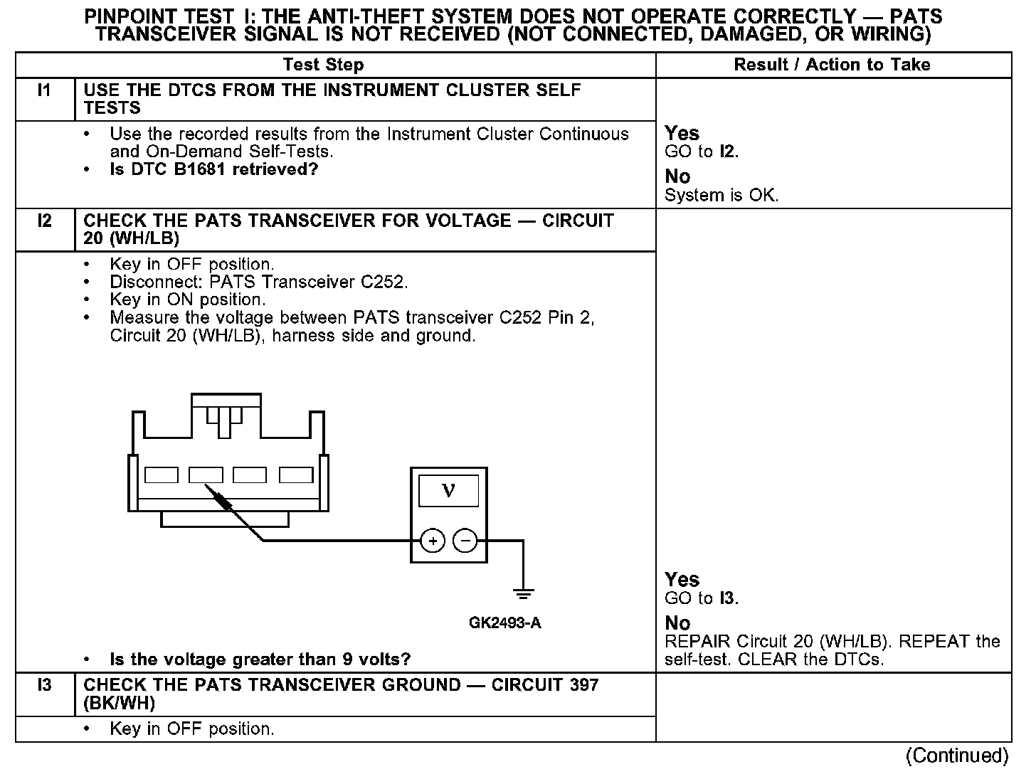 PINPOINT TEST I: THE ANTI-THEFT SYSTEM DOES NOT OPERATE CORRECTLY - PATS TRANSCEIVER SIGNAL IS NOT RECEIVED (NOT CONNECTED, DAMAGED, OR WIRING)