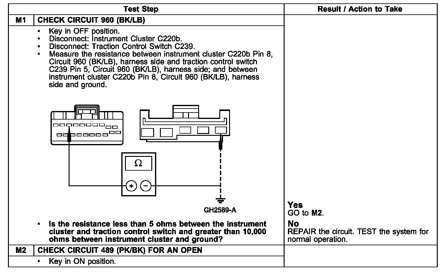 PINPOINT TEST M: THE TRACTION CONTROL INDICATOR IS INOPERATIVE-