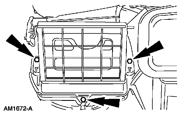 1. Remove the evaporator core housing. Refer to: Heating and Air Conditioning, Evaporator Case, Service and Repair, Removal and Installation, Removal and Installation