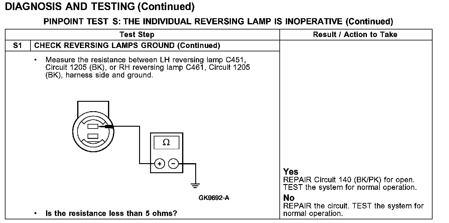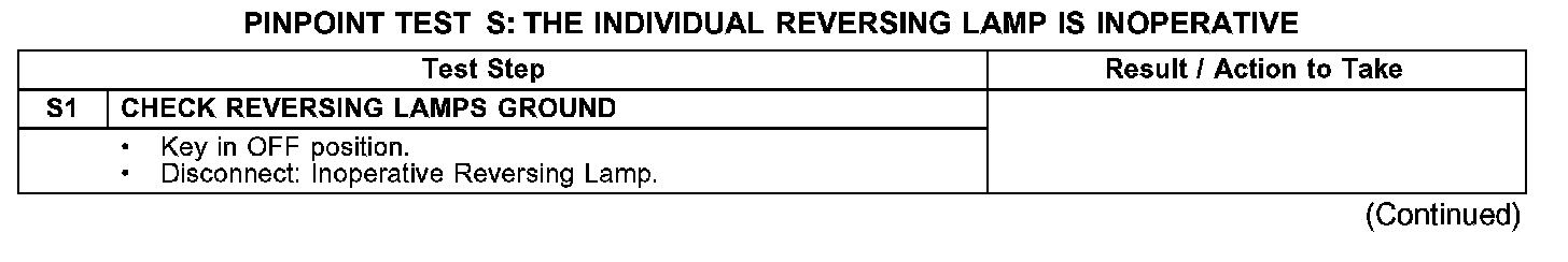 PINPOINT TEST S: THE INDIVIDUAL REVERSING LAMPS IS INOPERATIVE