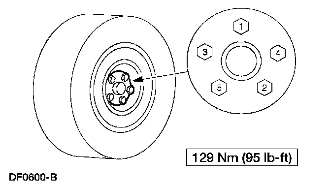 2. CAUTION: Failure to tighten the wheel nuts in a star pattern can result in high brake disc runout, which will speed up the development of brake roughness, shudder and vibration.