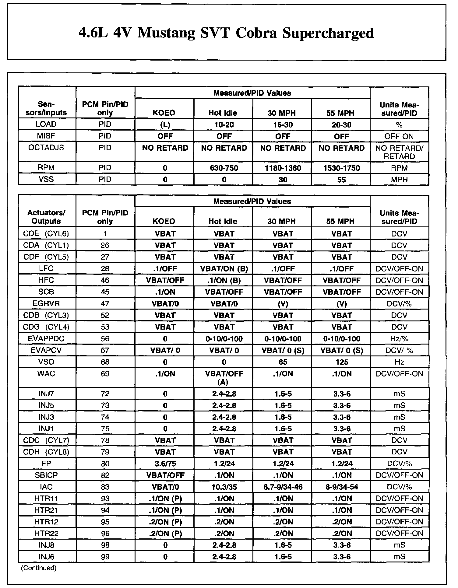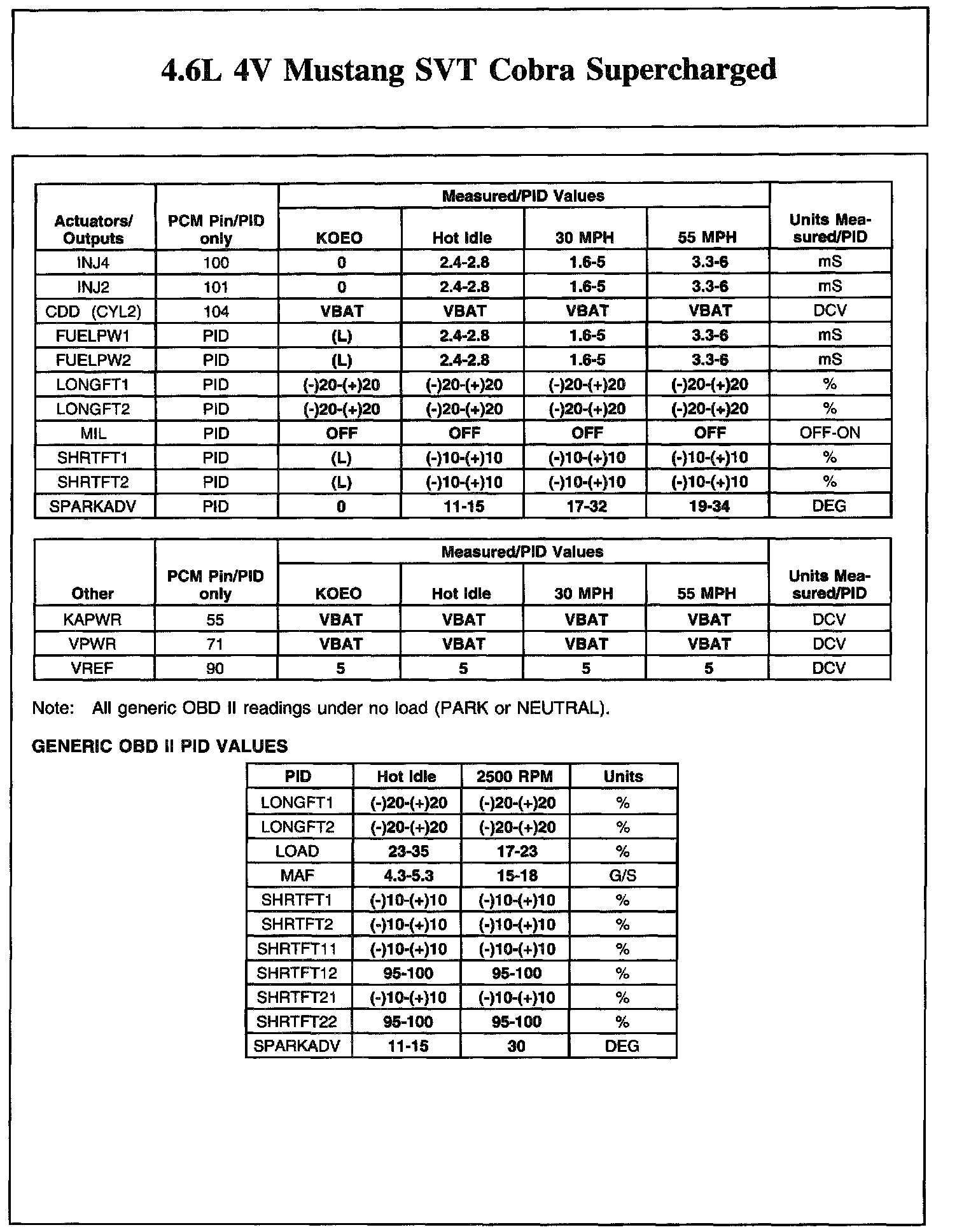 The Typical Diagnostic Reference Value Charts do not display fault PIDs. These are PIDs which indicate a hard fault with the circuit. They display a value of "YES" or "NO" and are PIDs ending with an "F".