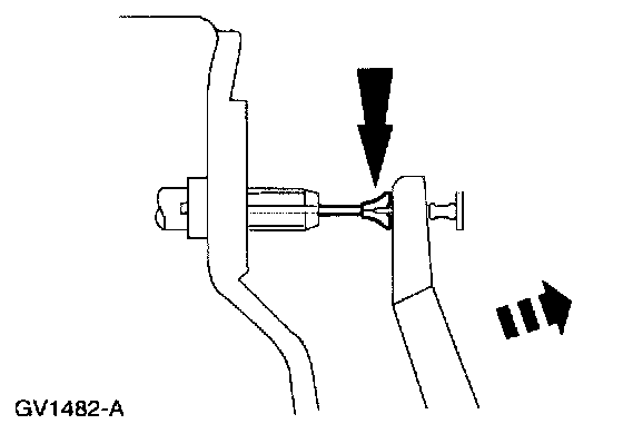 1. Push the accelerator cable nylon bushing out of the accelerator pedal and shaft arm.