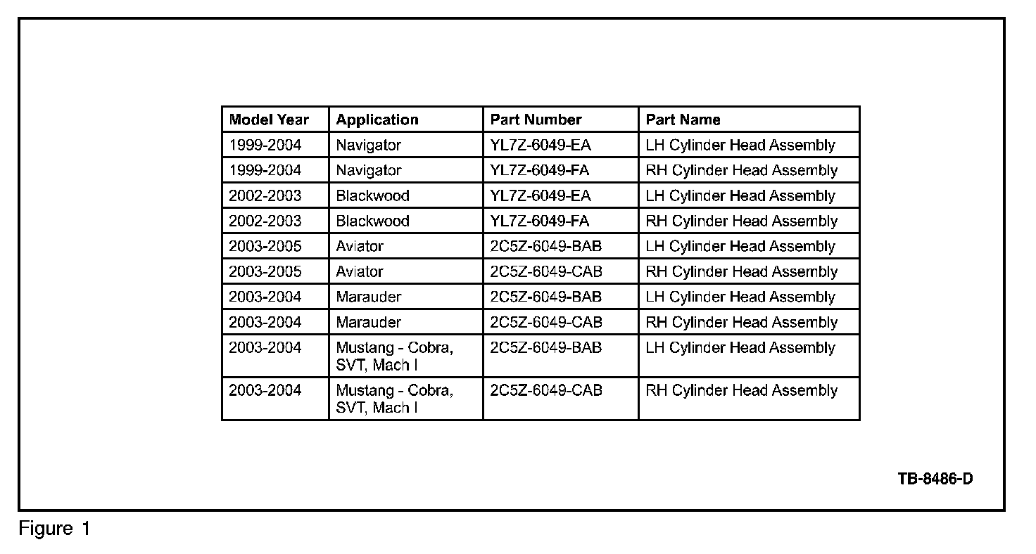 Some 1999-2004 Navigator, 2002-2003 Blackwood, 2003-2005 Aviator, 2003-2004 Marauder and 2003-2004 Mustang vehicles built before 12/19/2004 equipped with 4.6L 4V/5.4 4V engine may exhibit a runs rough, lacks power, and engine misfire, prompted by a MIL light and DTC codes P0301 P0302, P0303, P0304, P0305, P0306, P0307, P0308, and P0316.