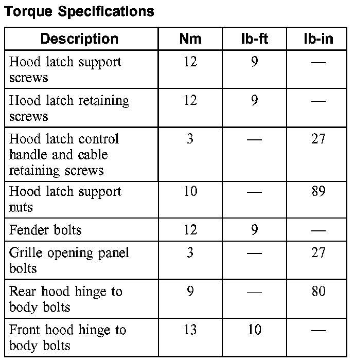 Torque Specifications: