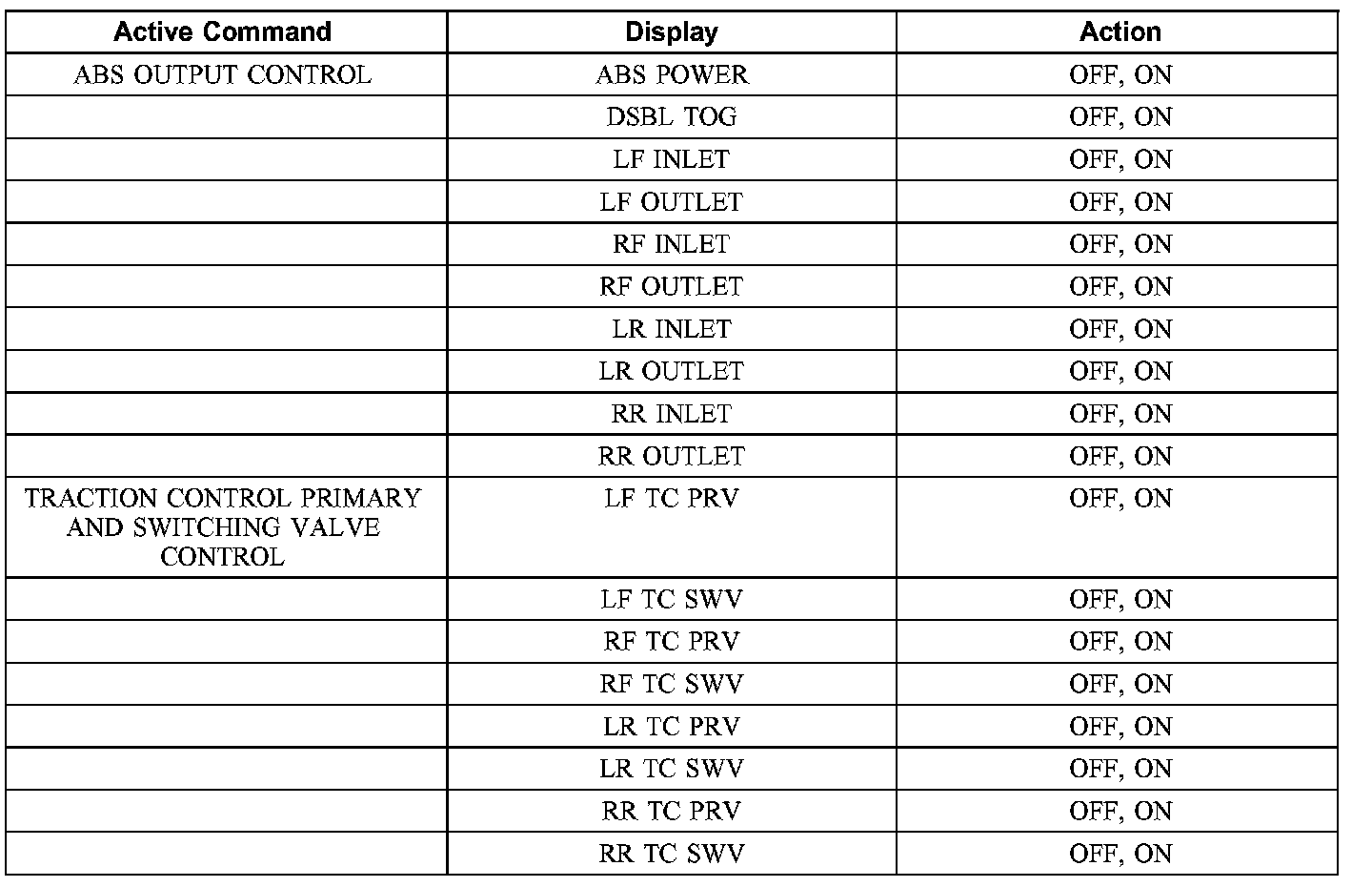ABS Control Module Active Command Index