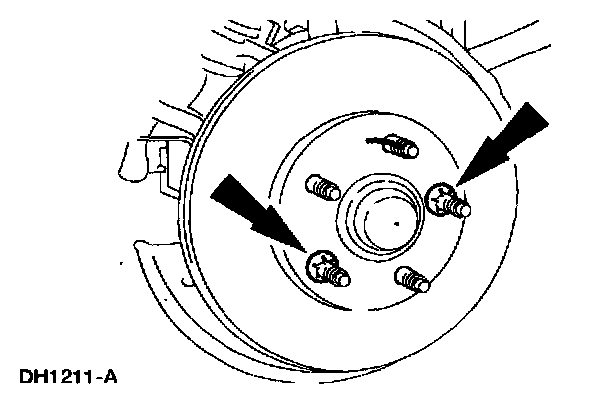 4. NOTE: If the brake disc cannot be easily removed, apply Rust Penetrant and Inhibitor F2AZ-19A501-A or equivalent meeting Ford specification ESR-M99C56-A to the mating surfaces.