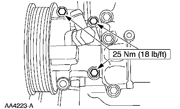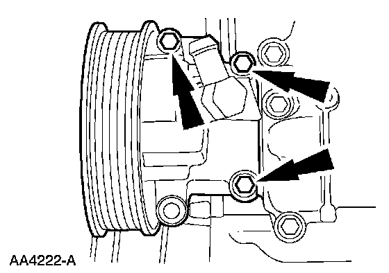 8. Remove the bolts and position the power steering pump aside.