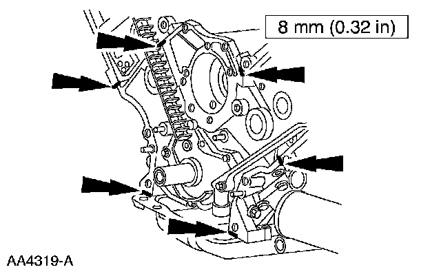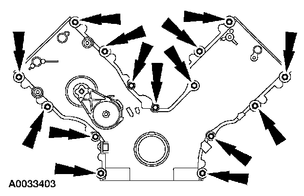 13. Remove the front oil pan bolts.