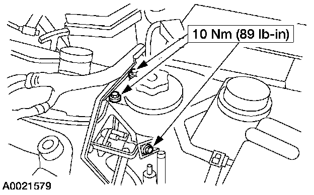 9. Position the power steering reservoir and install the bolts.