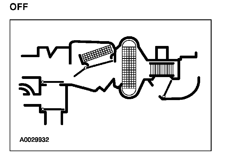 - The air inlet door vacuum control motor is at no vacuum, admitting only outside air into the passenger compartment.