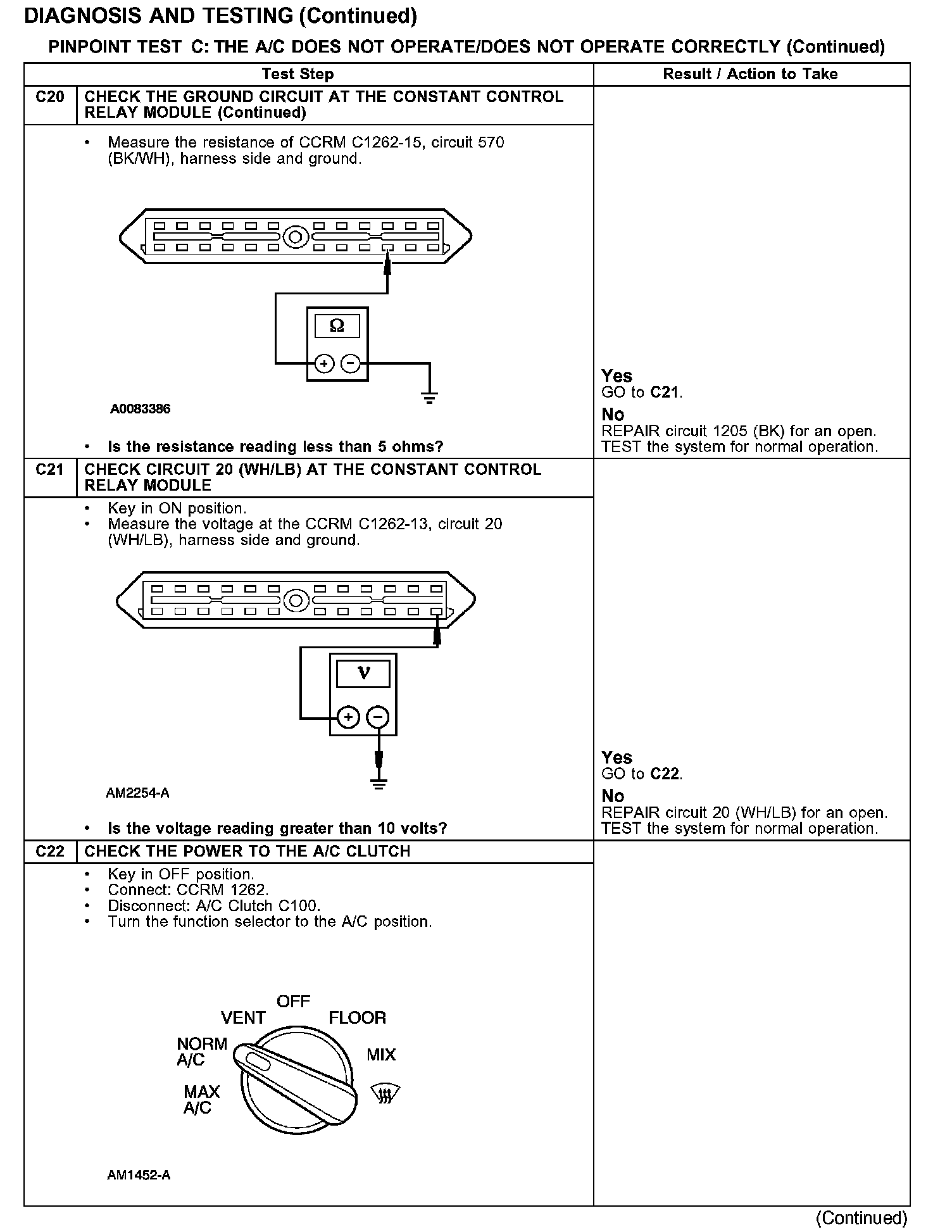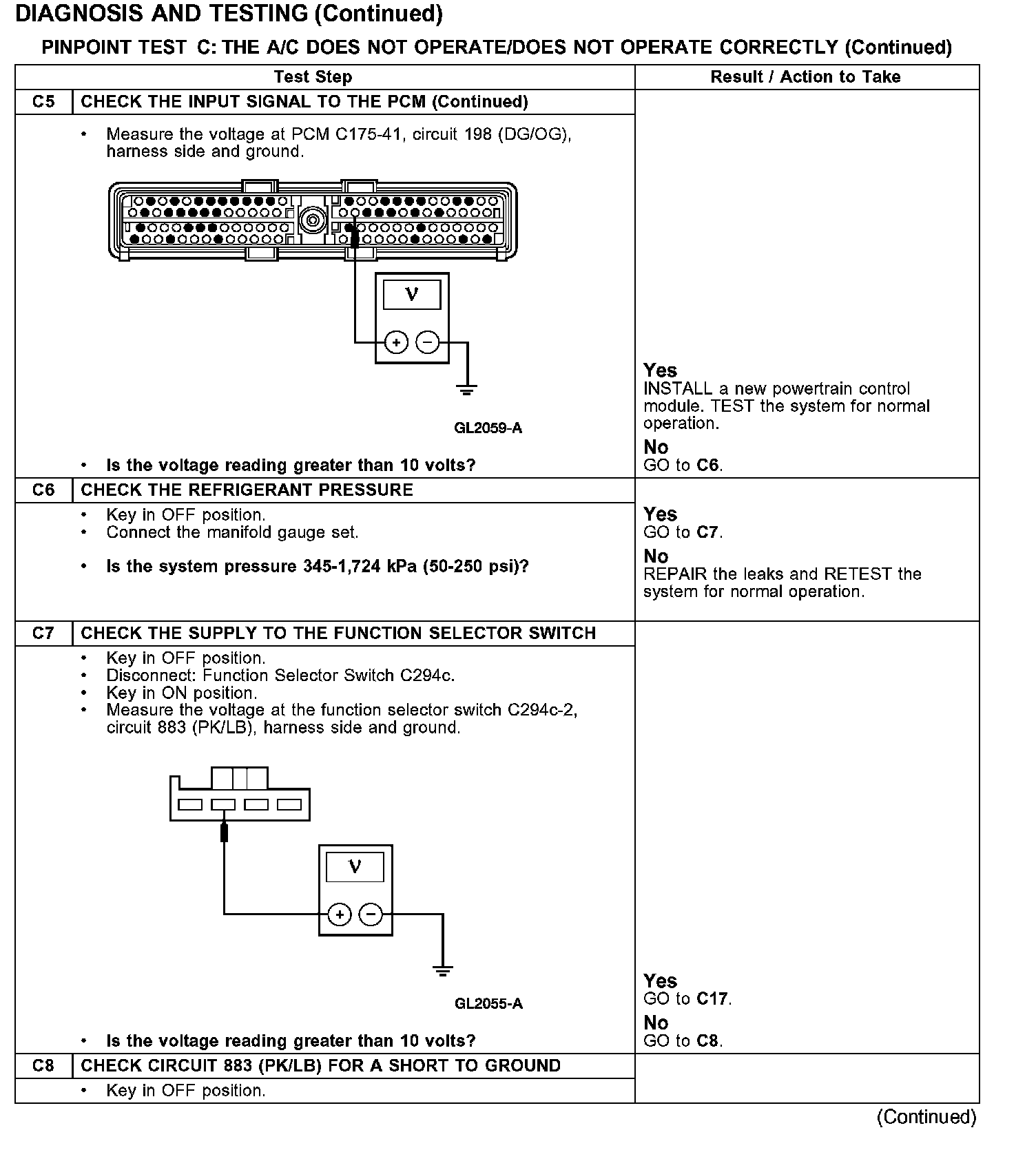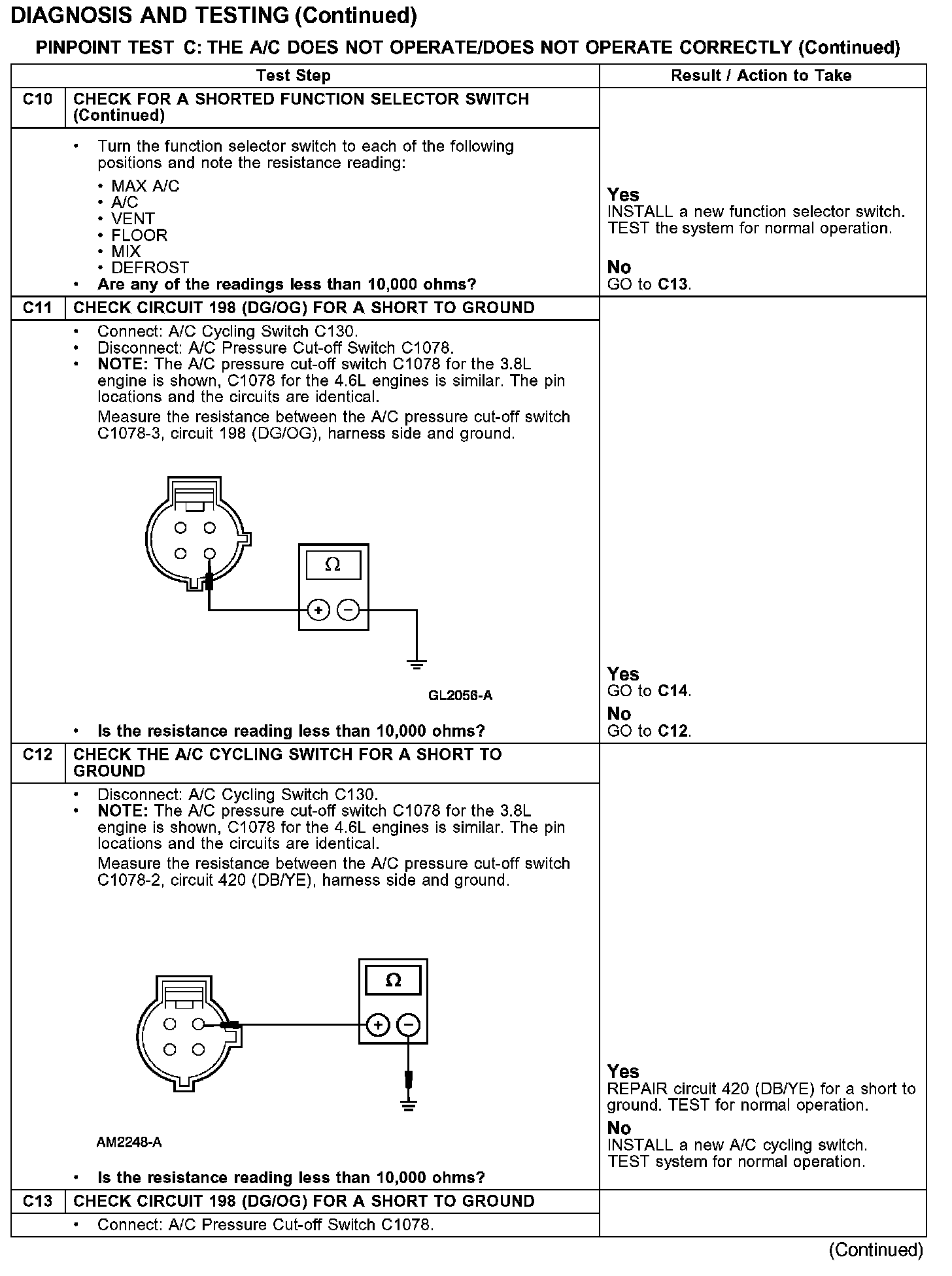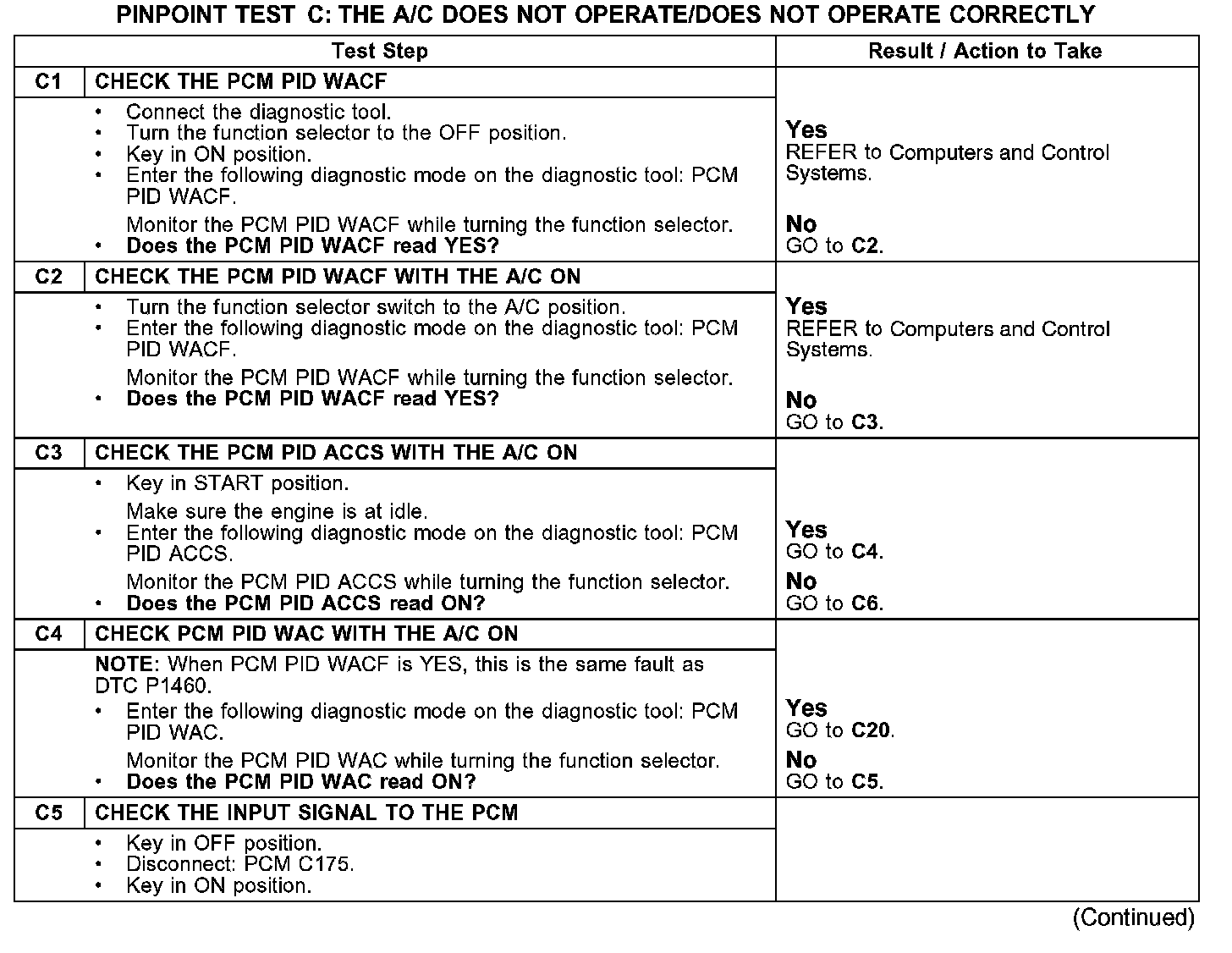 PINPOINT TEST C: THE A/C DOES NOT OPERATE/DOES NOT OPERATE CORRECTLY