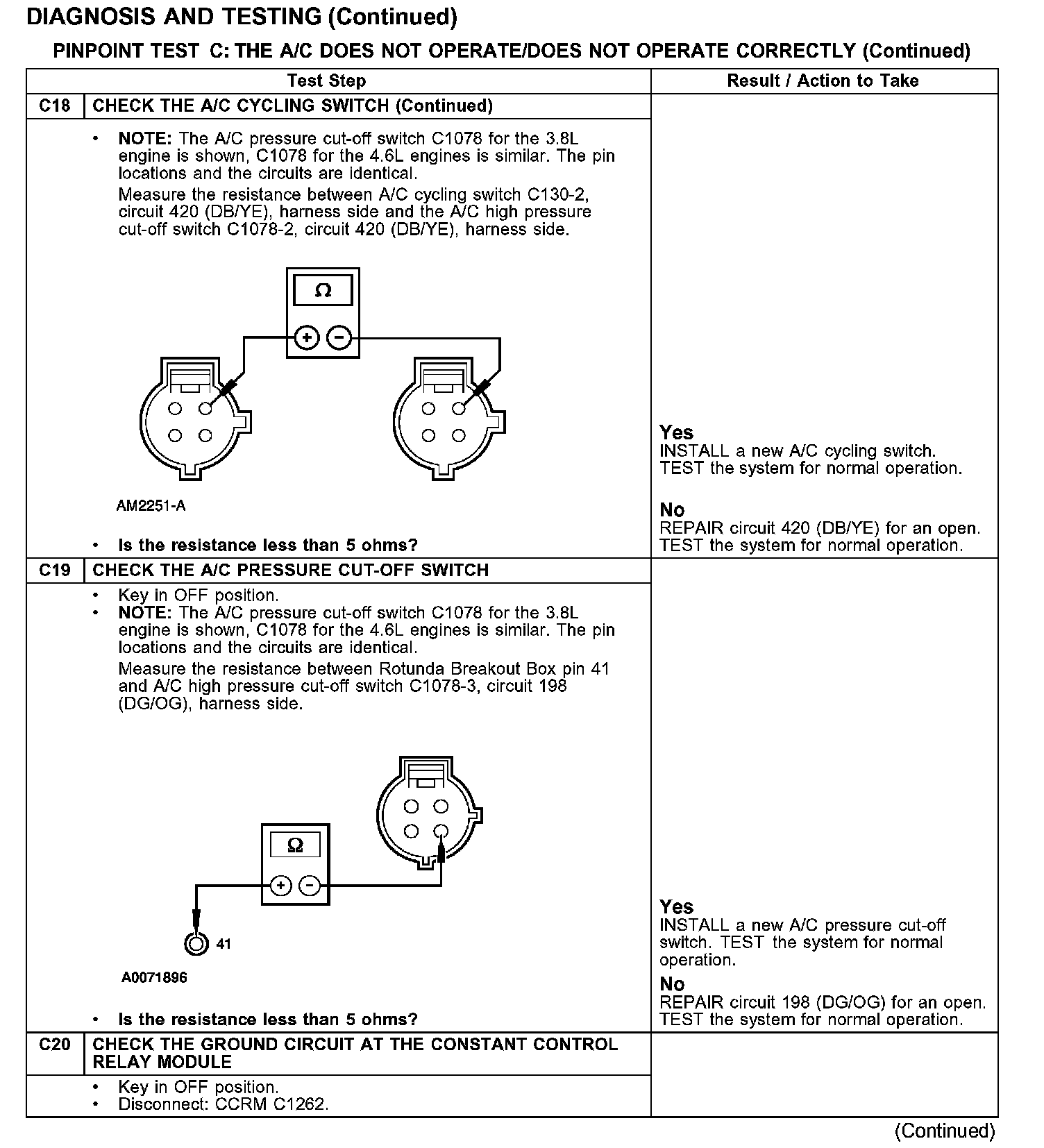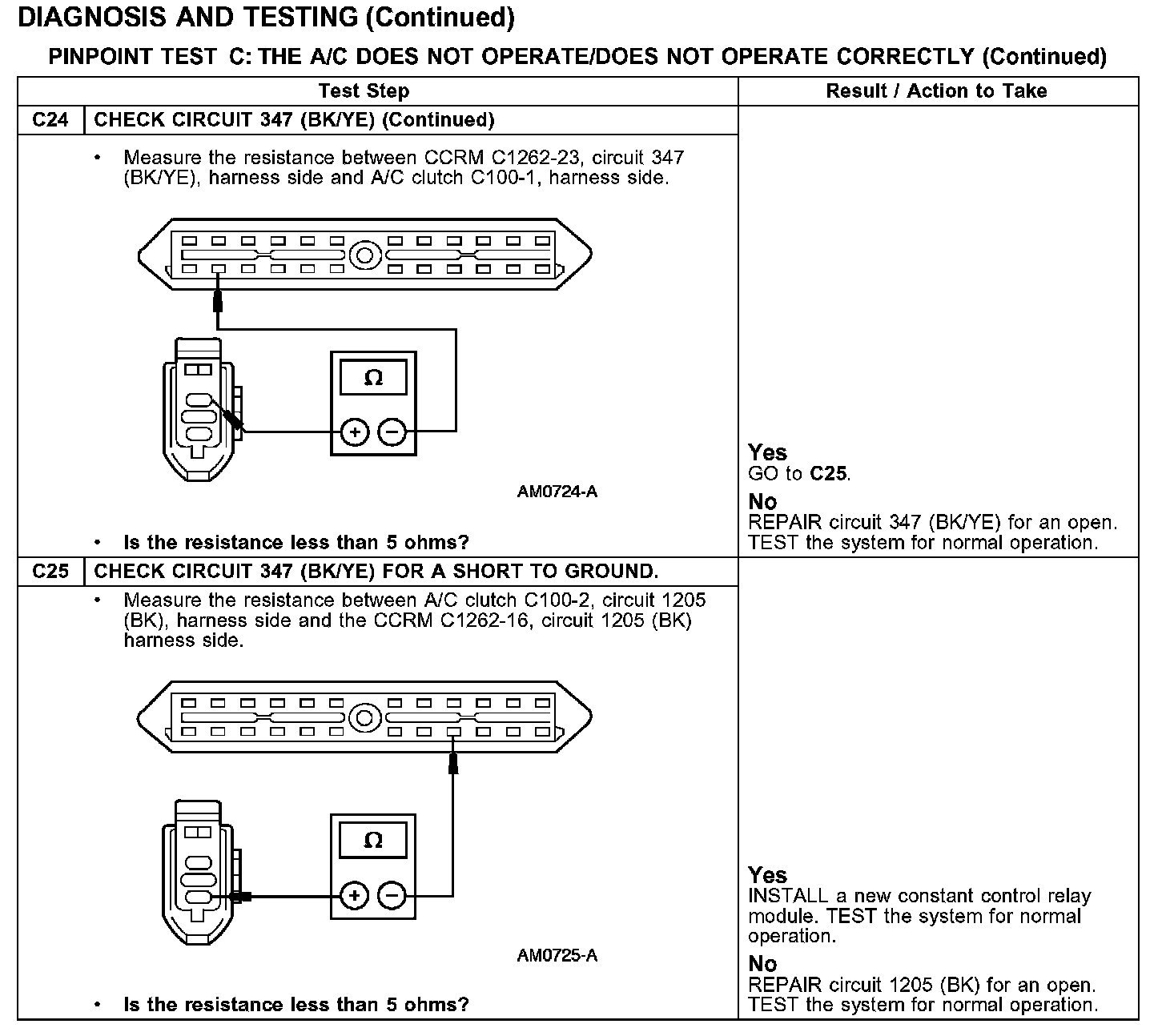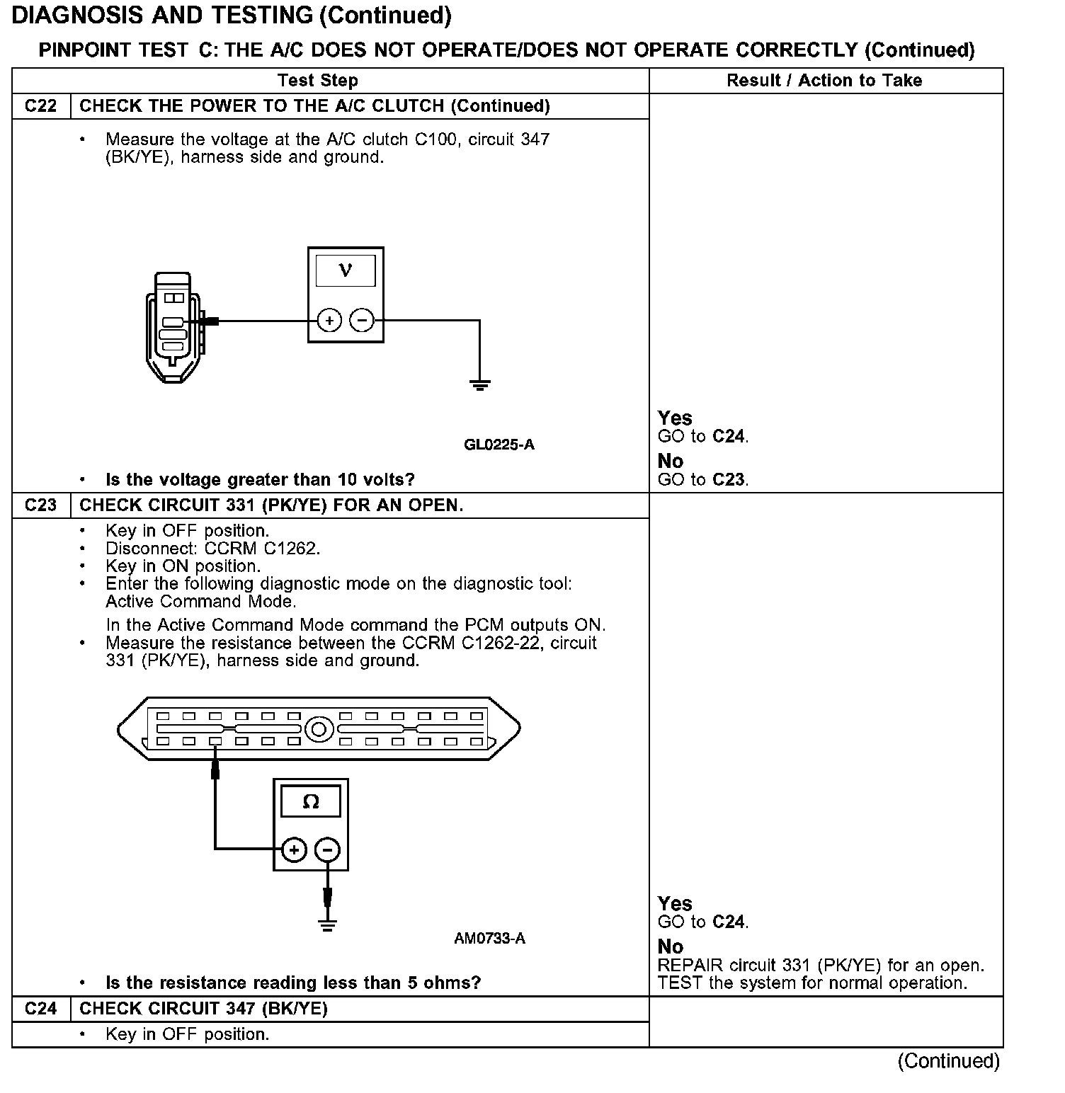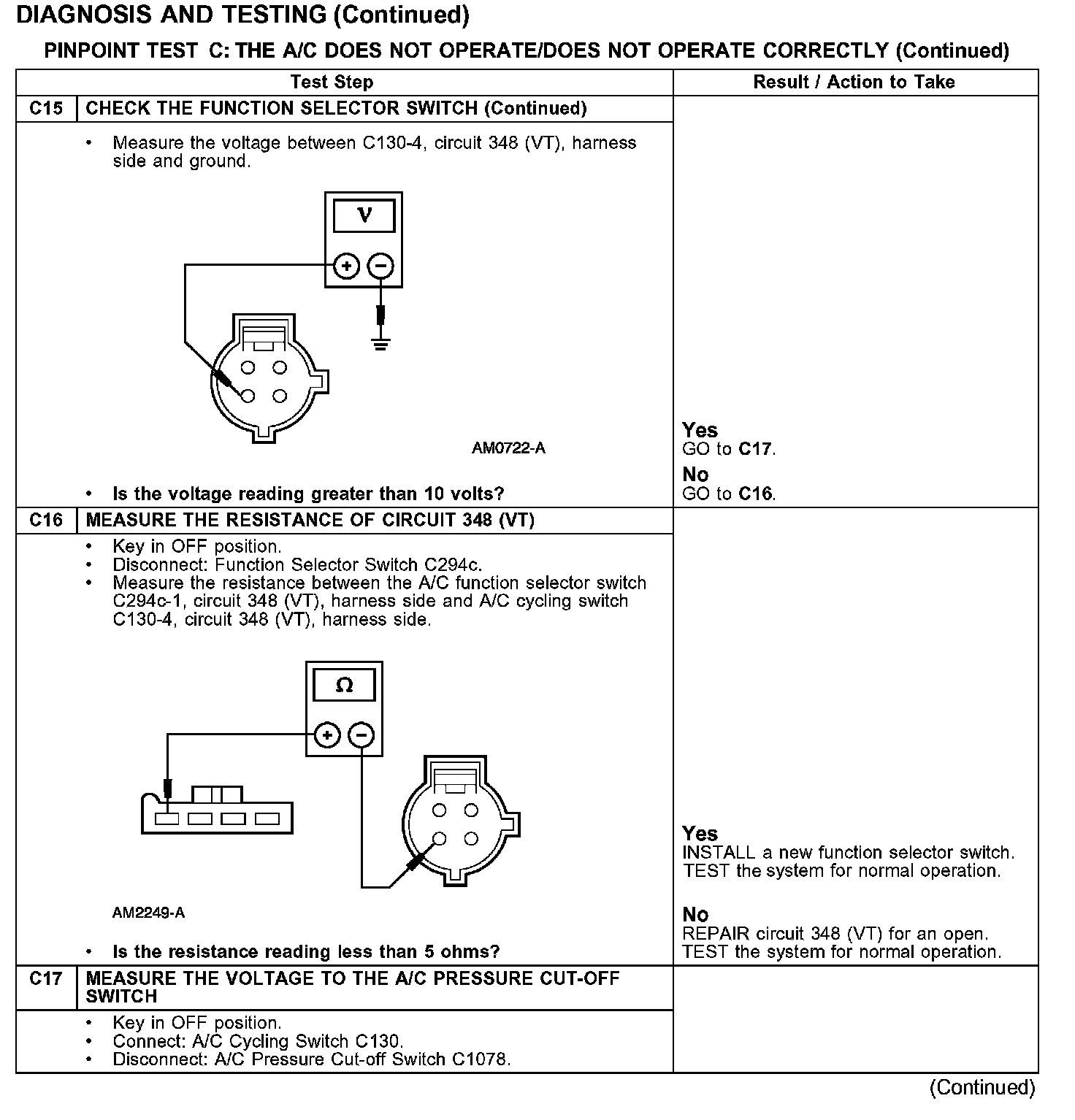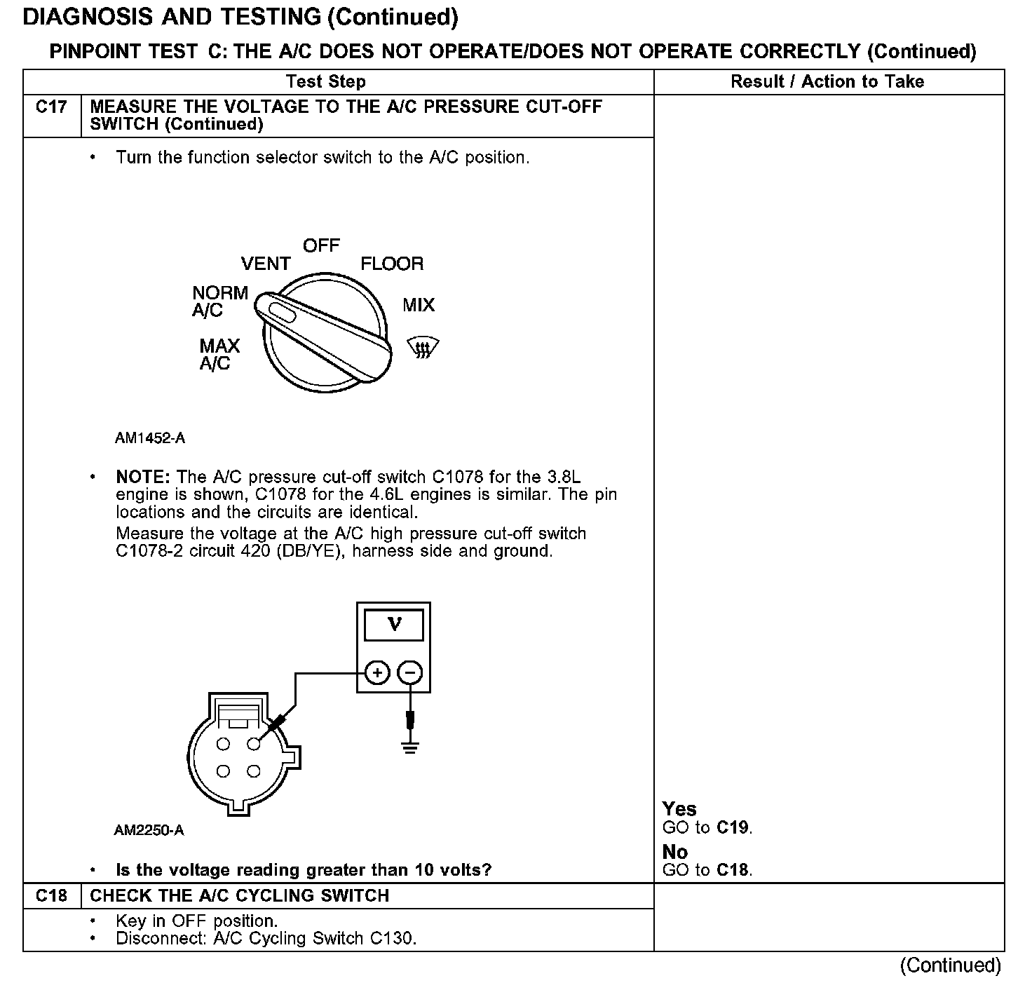 PINPOINT TEST C: THE A/C DOES NOT OPERATE/DOES NOT OPERATE CORRECTLY