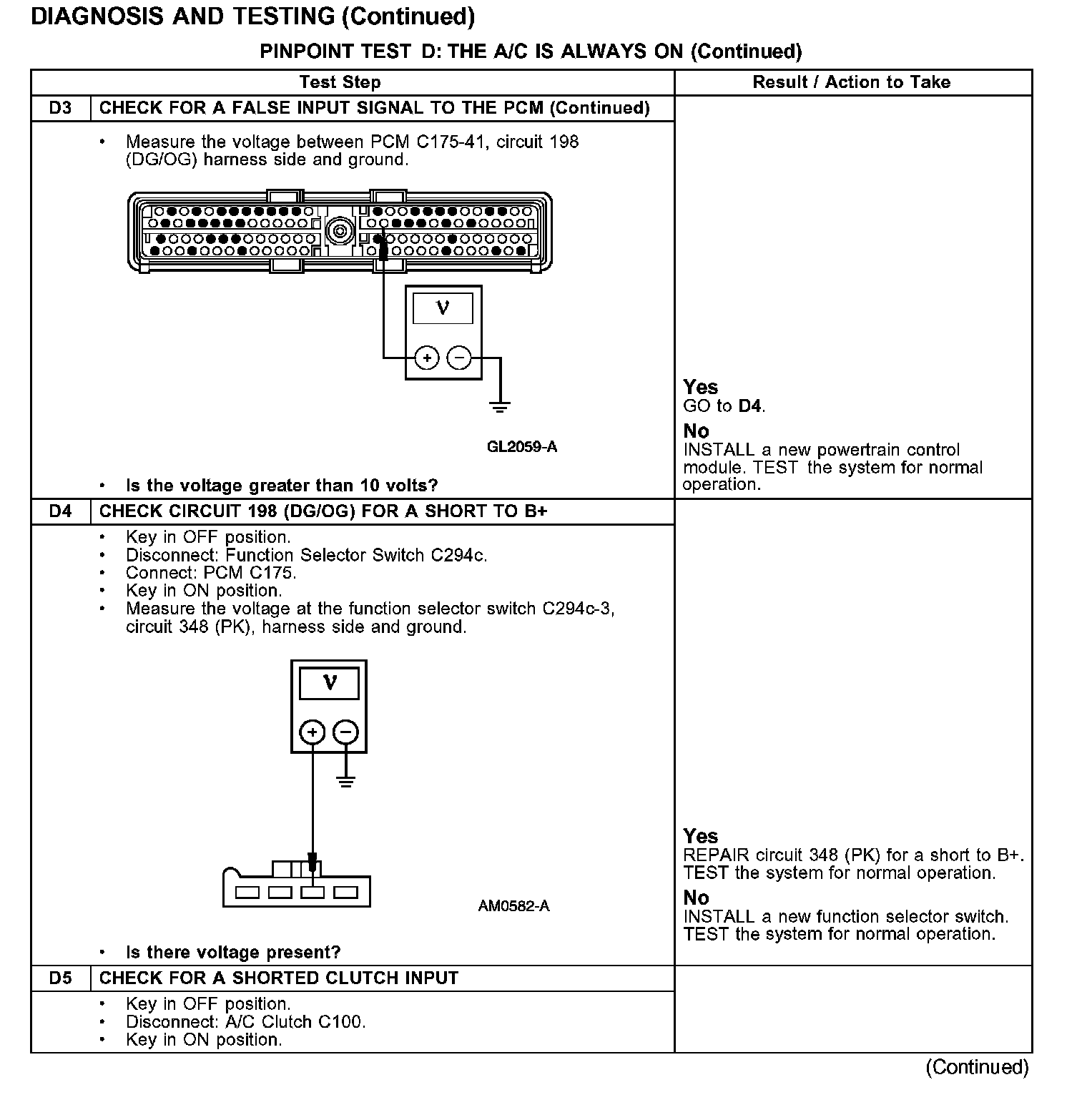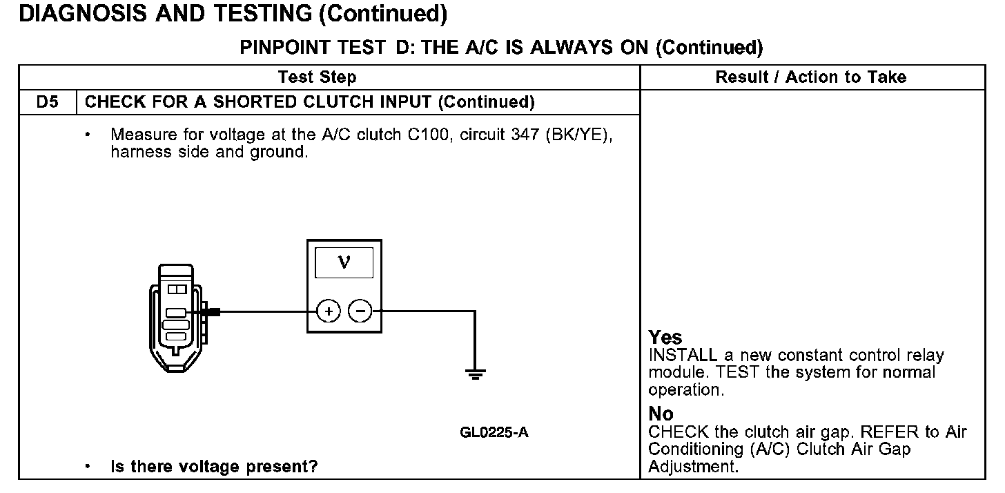 PINPOINT TEST D: THE A/C IS ALWAYS ON