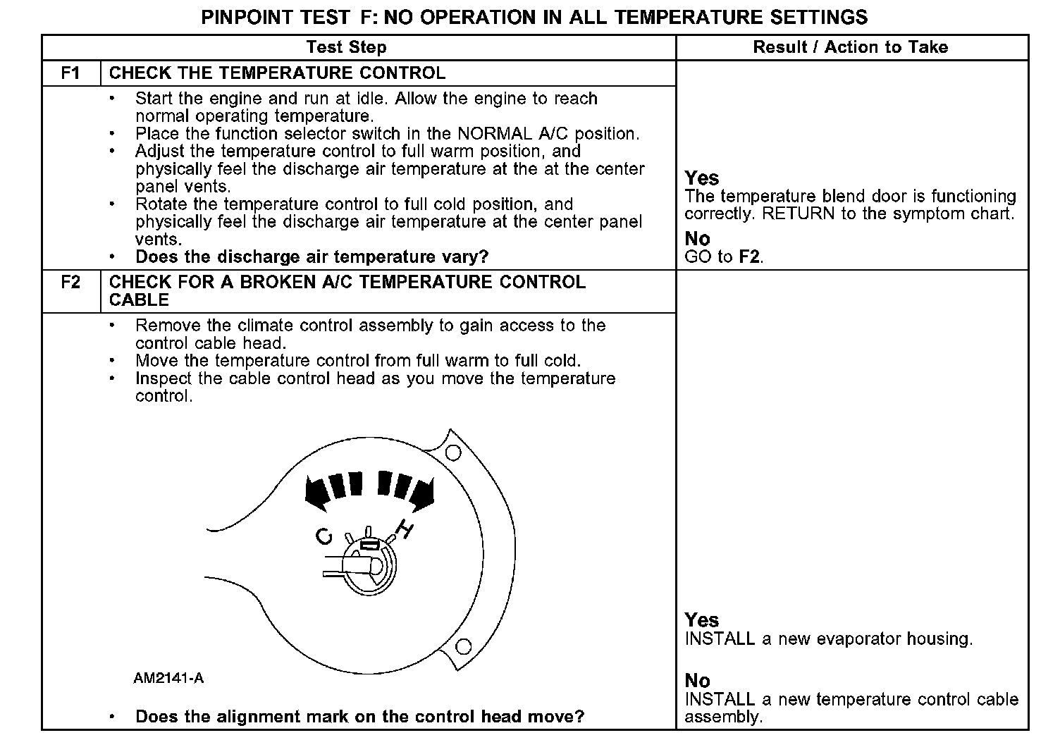 PINPOINT TEST F: NO OPERATION IN ALL TEMPERATURE SETTINGS