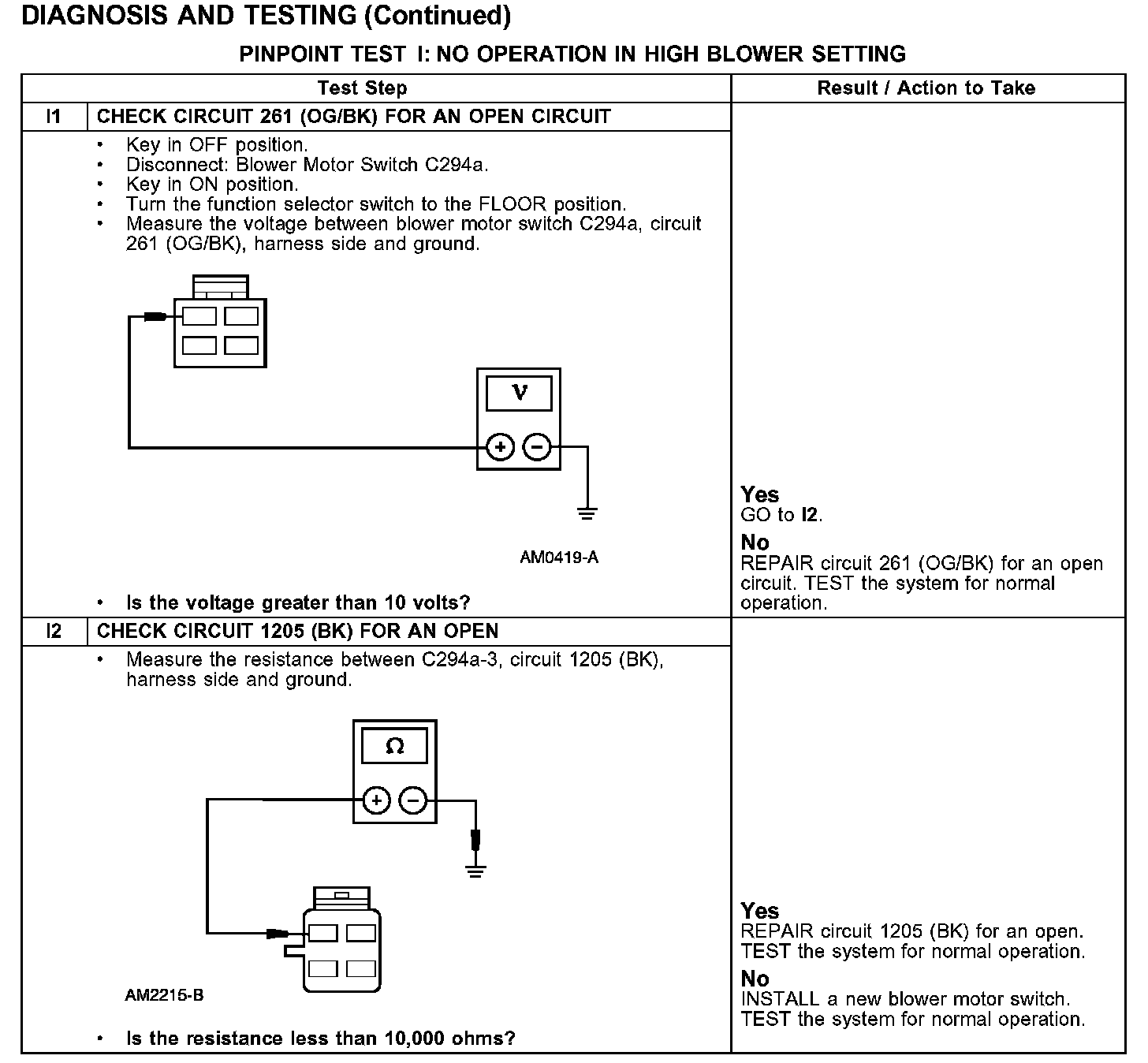 PINPOINT TEST I: NO OPERATION IN HIGH BLOWER SETTING