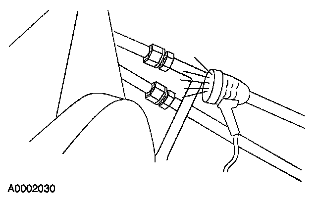 Disconnect the high-pressure and low-pressure service valves and remove the deluxe injector loop kit from the vehicle.