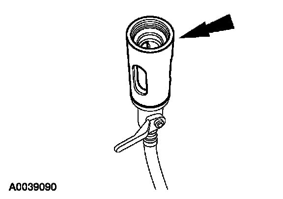 8. Remove the fluorescent dye injector from the low-pressure service gauge port valve and the R-134a A/C refrigerant service center or manifold gauge set.